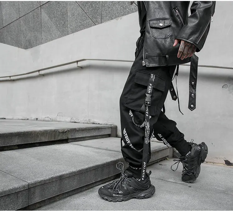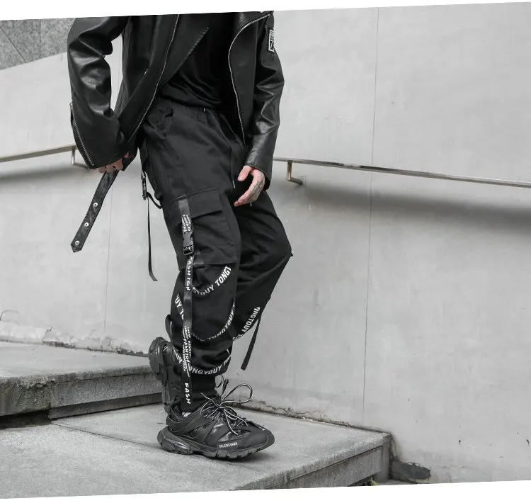 Брюки-карго мужские с лентами, трендовые брендовые свободные штаны ...