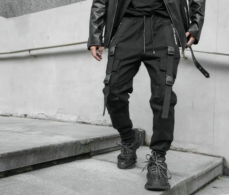 Брюки-карго мужские с лентами, стильные Джоггеры со множеством карм...