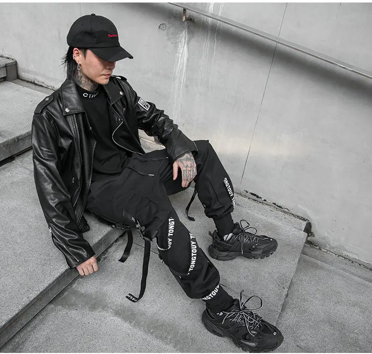 Уличная мода для мужчин, уличная мода, новые штаны-шаровары с ленто...