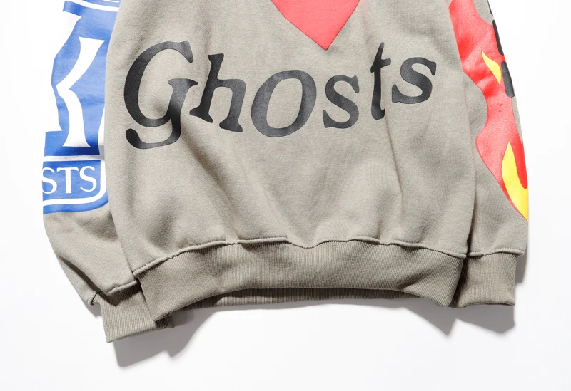Свитшот Kanye West с надписью I feel Ghost для мужчин и женщин, флисовая толстовка в стиле хип-хоп с принтом пламени, Свободная Повседневная Толстовка Xxxtentacion