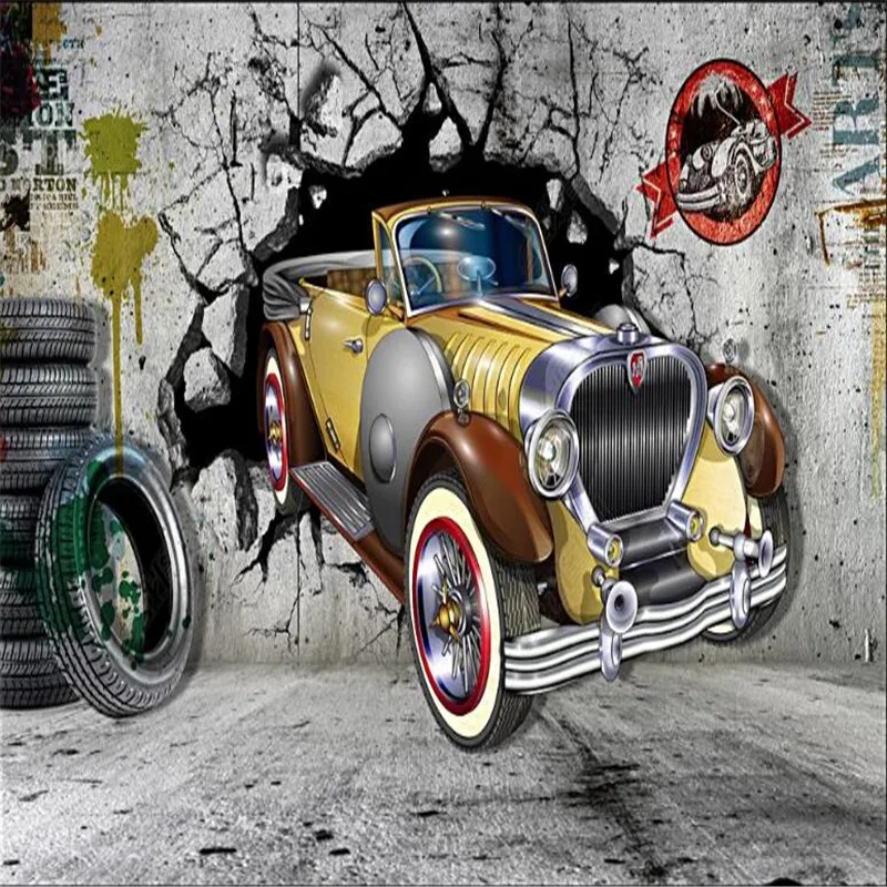 Пользовательские Ретро автомобиль сломал тему стены обои 3D Личность KTV бар клуб промышленный Декор настенная бумага Papel де Parede 3d