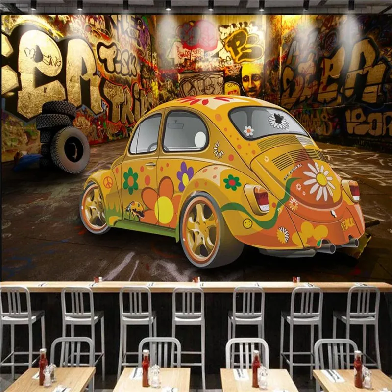 Индивидуальные 3D фото обои уличные граффити автомобиль спрей краска росписи КТВ Бар интернет кафе промышленный Декор обои 3D