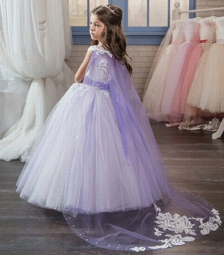 Платья для девочек, фиолетовые, с цветами, для свадьбы, первого причастия, юбка лолита вечерние для выпускного вечера, принцессы, подружки невесты