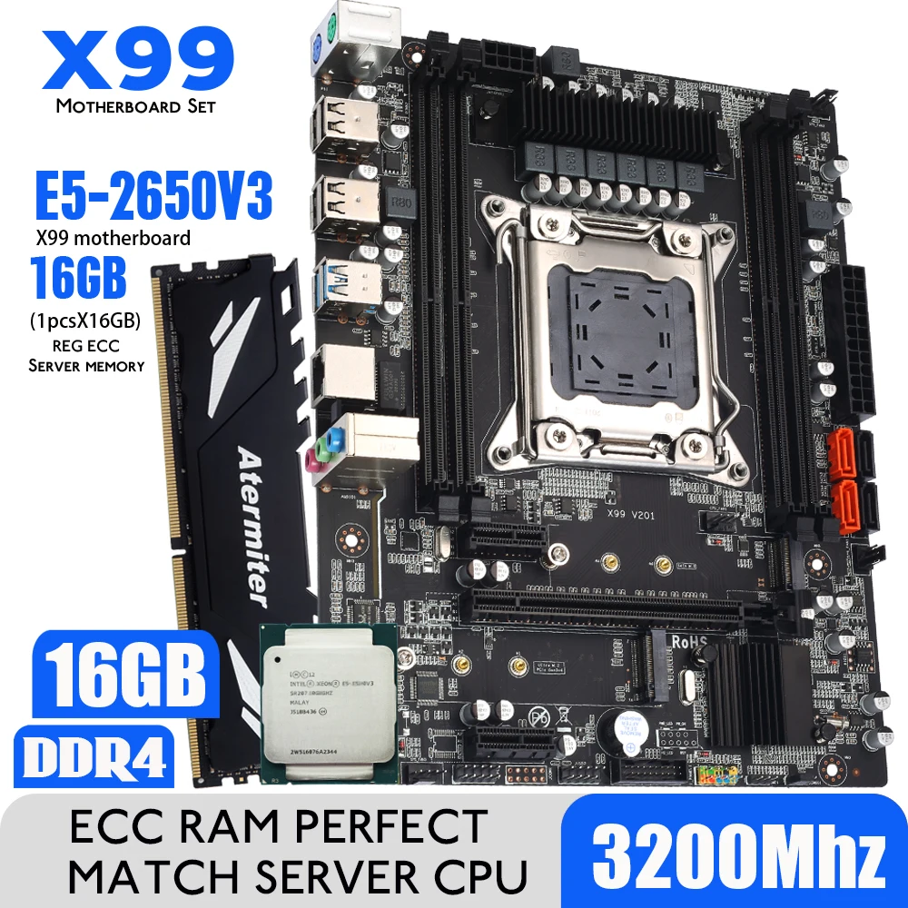 Комплект из материнской платы Atermiter X99, D4, DDR4, с процессором Xeon E5 2650 V3 LGA2011-3, 1X16 ГБ = 16 ГБ, 3200 МГц