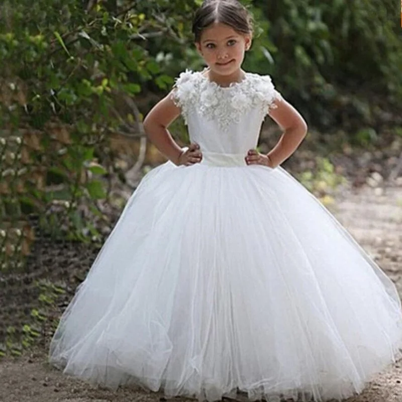 Детские Белые Платья с цветочным узором для девочек на свадьбу; нарядные платья принцессы для малышей; бальное платье; платья для первого причастия для девочек