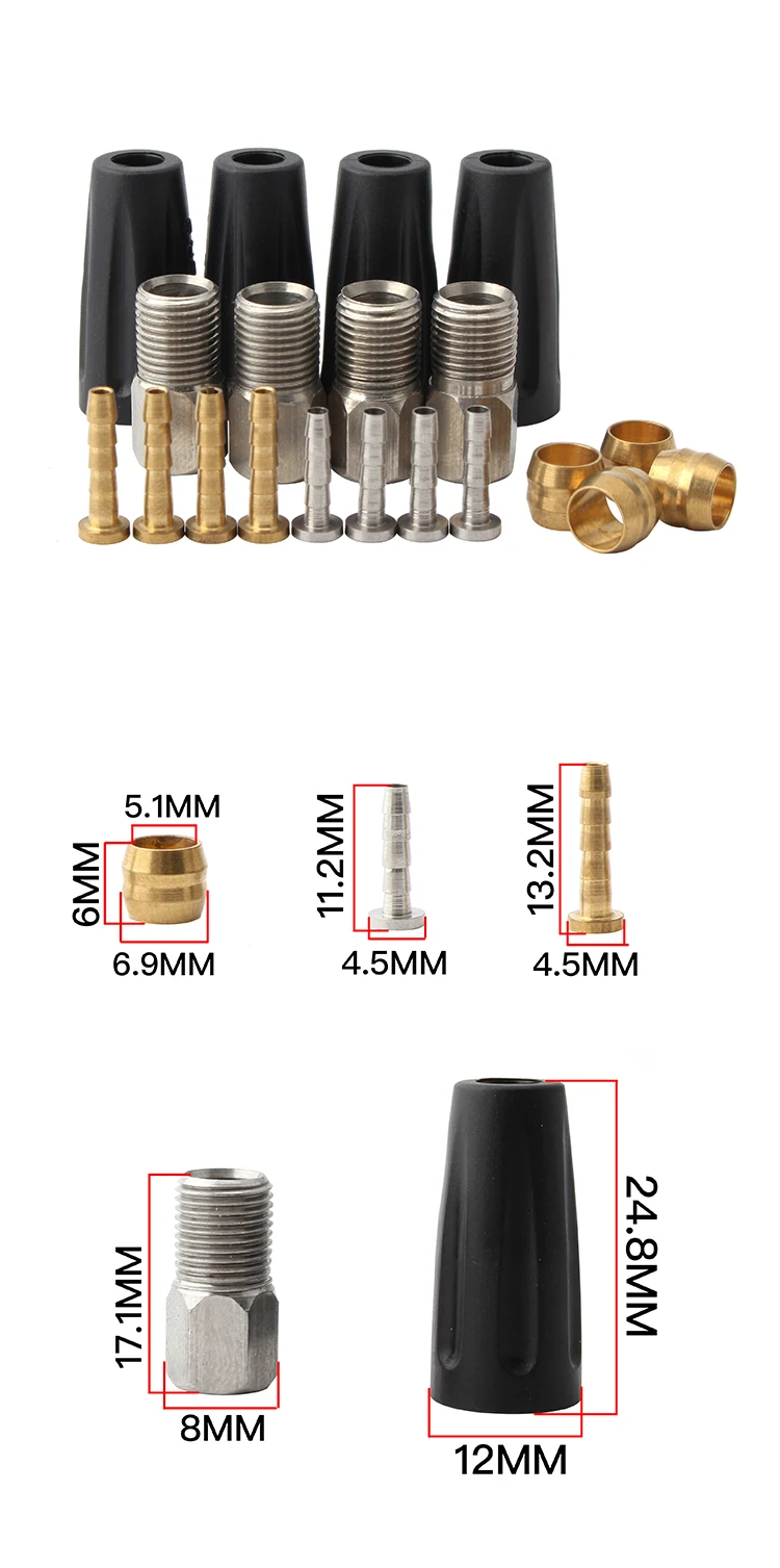 Велосипедный тормозной шланг MUQZI BH59 BH90, 4 комплекта, гидравлический дисковый тормоз, соединительная вставка, масляная игла, тормозной фитинг