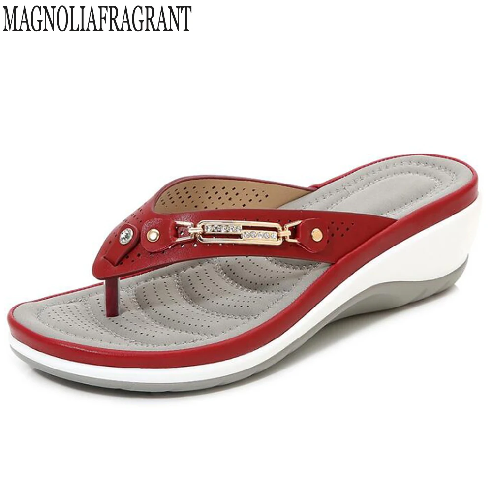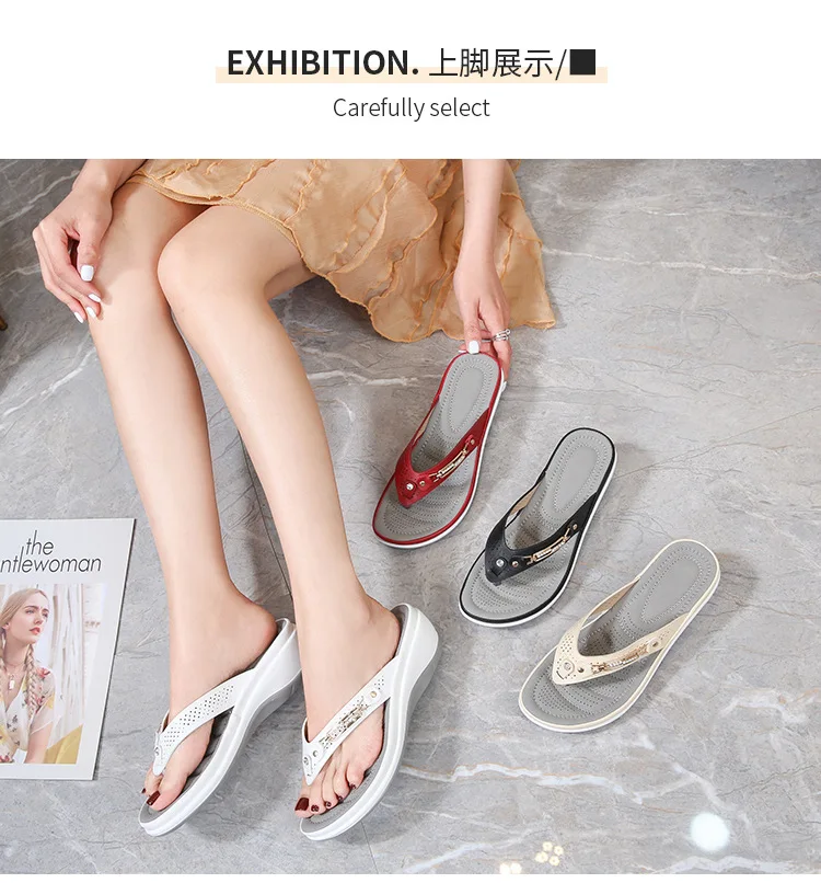 Женские пляжные шлепанцы на платформе, сланцы, с металлическими пуговицами, сандалии на танкетке, домашние тапочки для улицы, hy363, лето 2020
