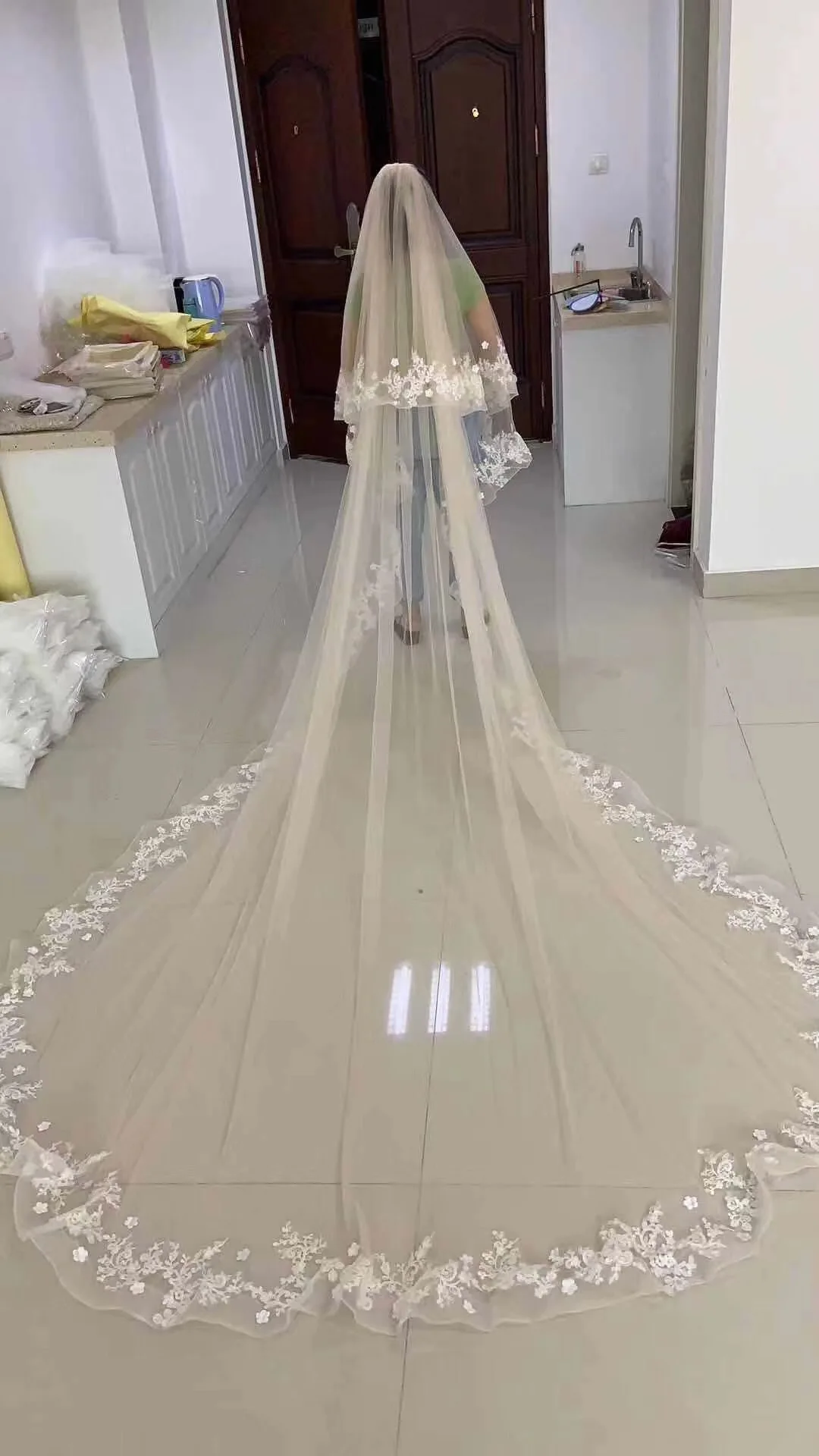 Длина вуали: Первый слой: около 35 дюймов (80 см) Второй слой: Approx138'' (350 см)