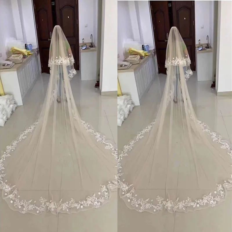 Фата свадебная с длинными кружевными краями, 3,5 м