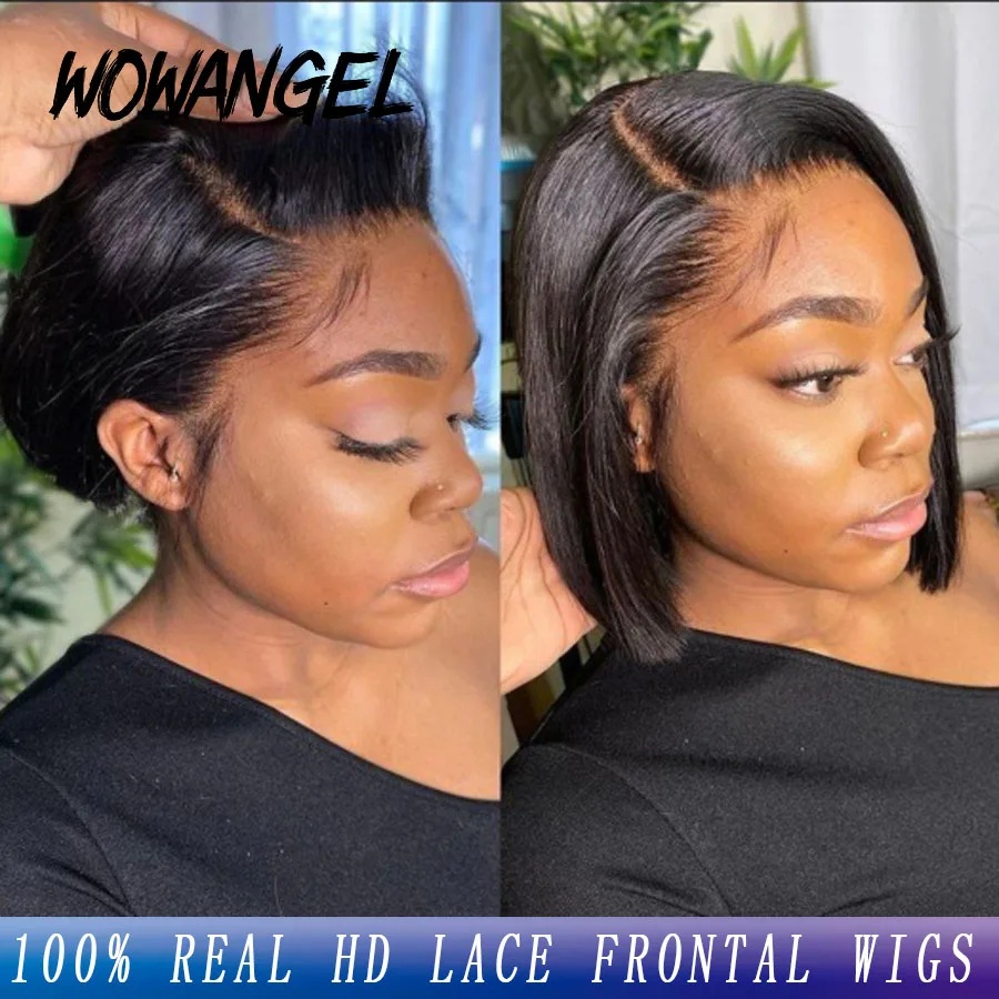 WOWANGEL настоящие HD парики из натуральных волос на фронте с кружевом, короткие прямые парики с Бобом для черных женщин, натуральные волосы, предварительно расплавленные