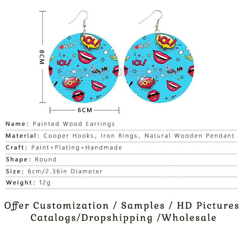 SOMESOOR Love U Kiss Me Lips Comics Bubble Prinetd деревянные серьг...