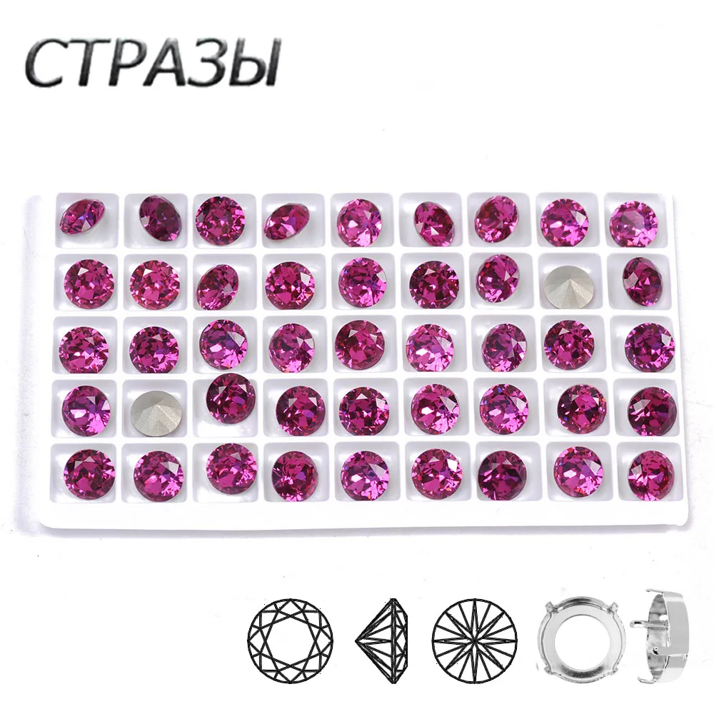 CTPA3bI Блестящий стеклянный кристалл цвета фуксии, пришивной камен...