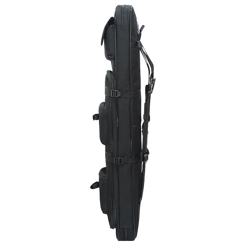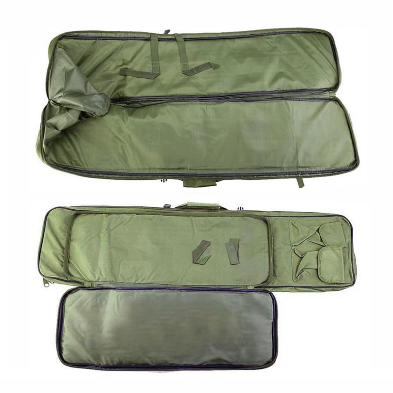 Изготовлен из нейлона высокой плотности. Содержит расширенную крышку для хранения винтовки с максимальной длиной 95 см. Маленький оружейный мешок способен держать 95 см винтовку. 2 застежки-молнии и 2 v-lcro откидные маленькие мешочки для переноски журнала или небольших зубчатых колес. 1 большое отделение на молнии на задней стороне. Фото/имя держатель для карт на задней стороне. С 2 ручными ремнями для переноски. Регулируемый мягкий плечевой ремень и нагрудный ремень. С толстой подушкой для защиты. Идеально подходит для военных игр на открытом воздухе.