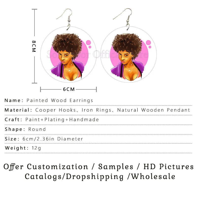 Деревянные серьги-подвески SOMESOOR, с изображением меланина, женск...
