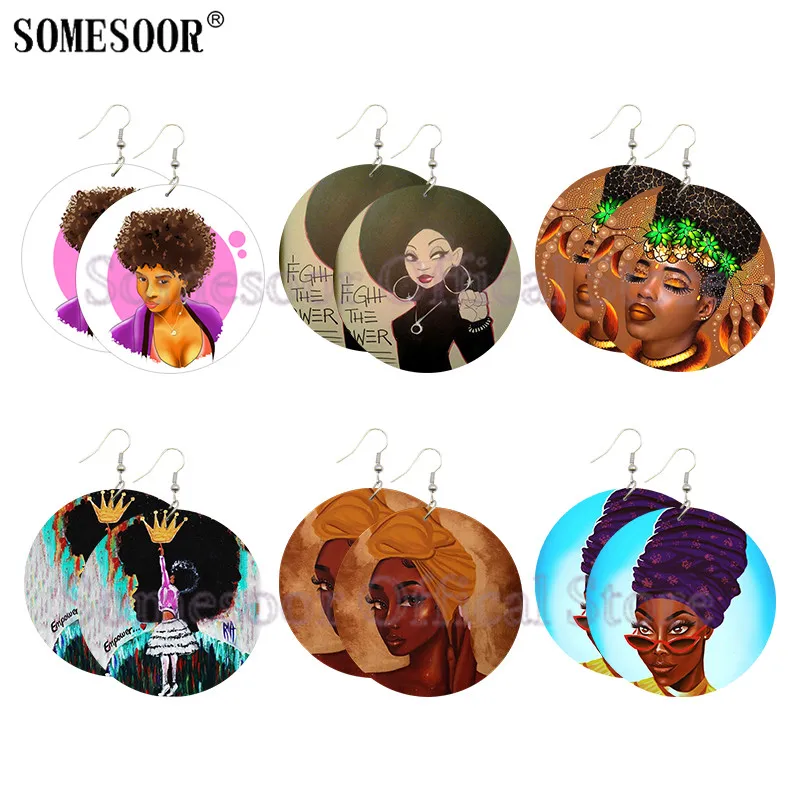 SOMESOOR напечатанные африканские королевские деревянные висячие серьги афроцентрические головные уборы дизайн натуральных волос Висячие уши для черных женщин Подарки