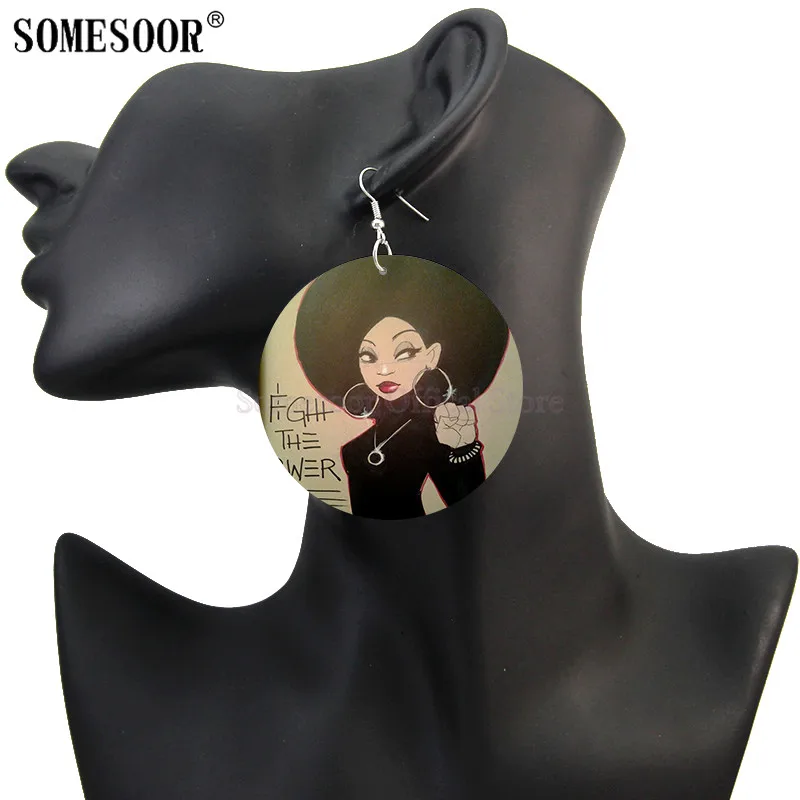 SOMESOOR афро косы поп-арт печатные деревянные висячие серьги черна...