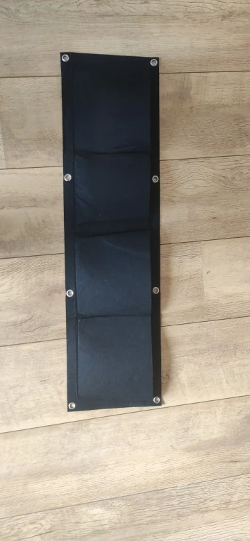 Todavía no lo he usado. Pero se ve fuerte y la tela es gruesa. Lo único que estoy pensando en como ponerlo para que la pared no sufra mucho cuando riegue. Mandaré fotos cuando lo tenga montado