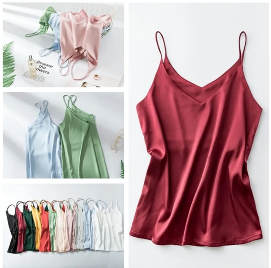 Топ на тонких бретелях, женский, с V-образным вырезом, базовый белый топ без рукавов, атласный шелковый топ, женский летний топ размера плюс 3XL
