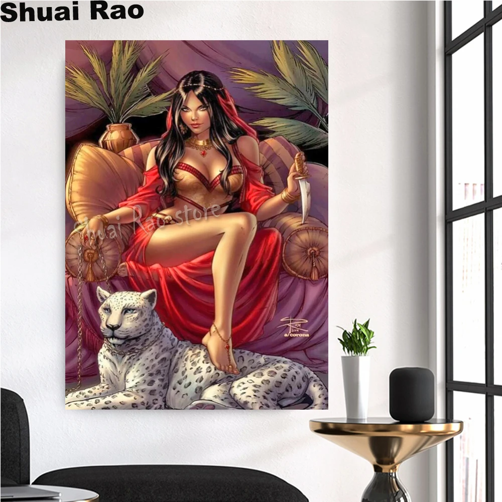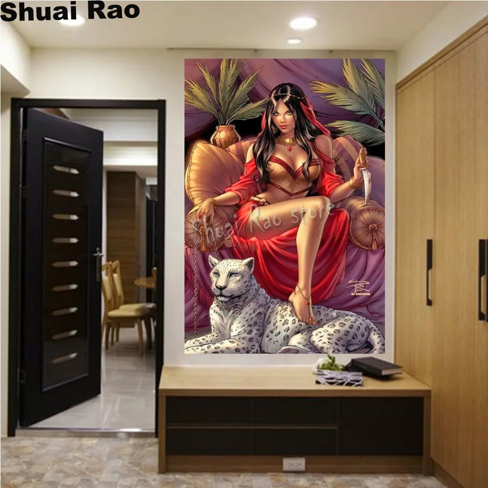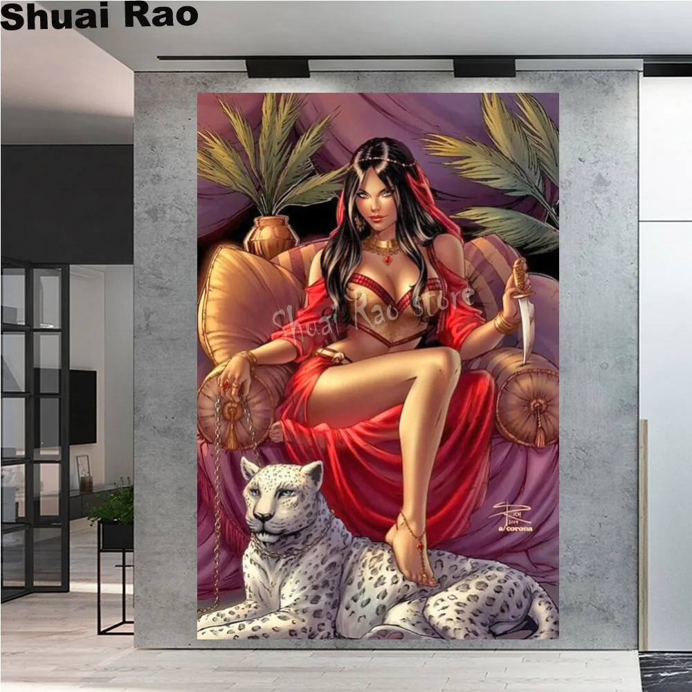 Сексуальная красота Леопард 5d diy алмазная живопись полный квадратный Круглый Алмаз Вышивка мозаика Вышивка крестом лучший Интеллектуальный подарок,