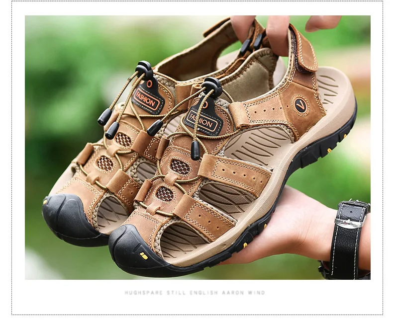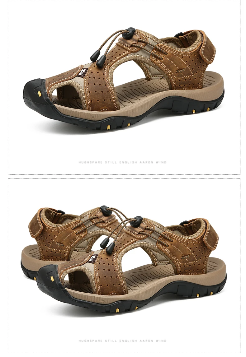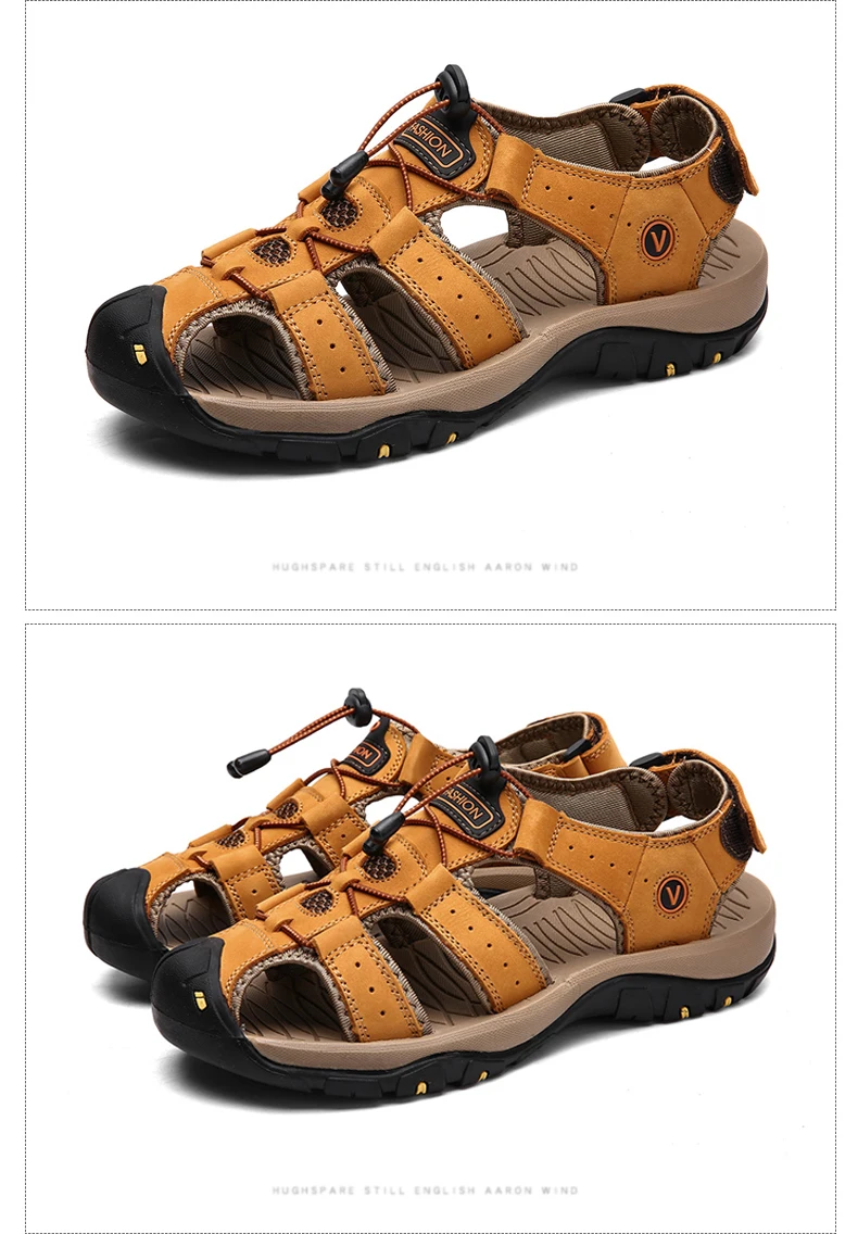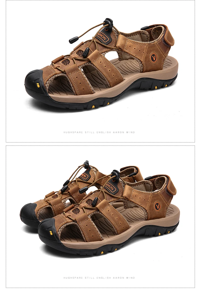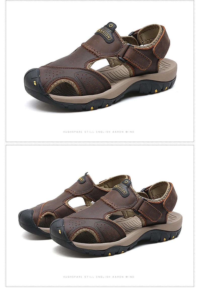 DEKABR/Новые Летние сандалии; Мужские пляжные сандалии из натуральной кожи высокого качества; Удобная мягкая обувь; Резиновая обувь; Размер 48