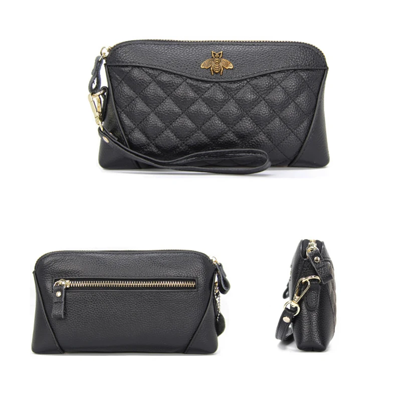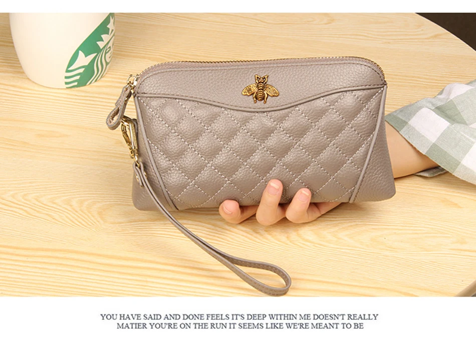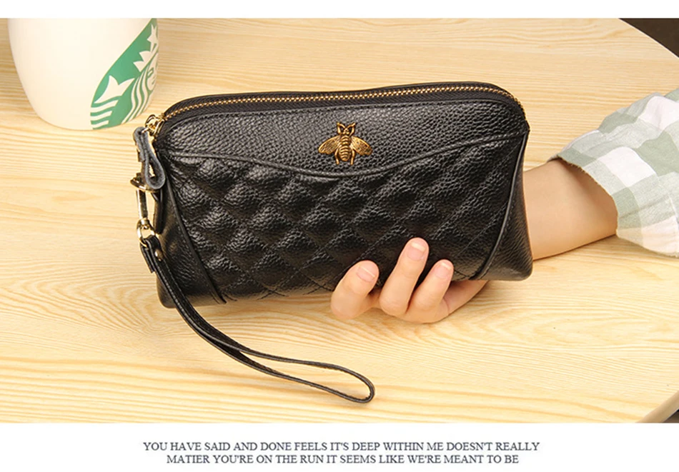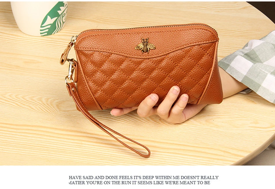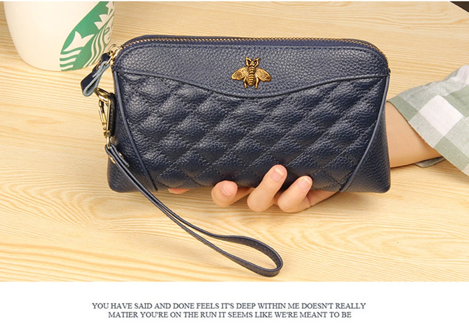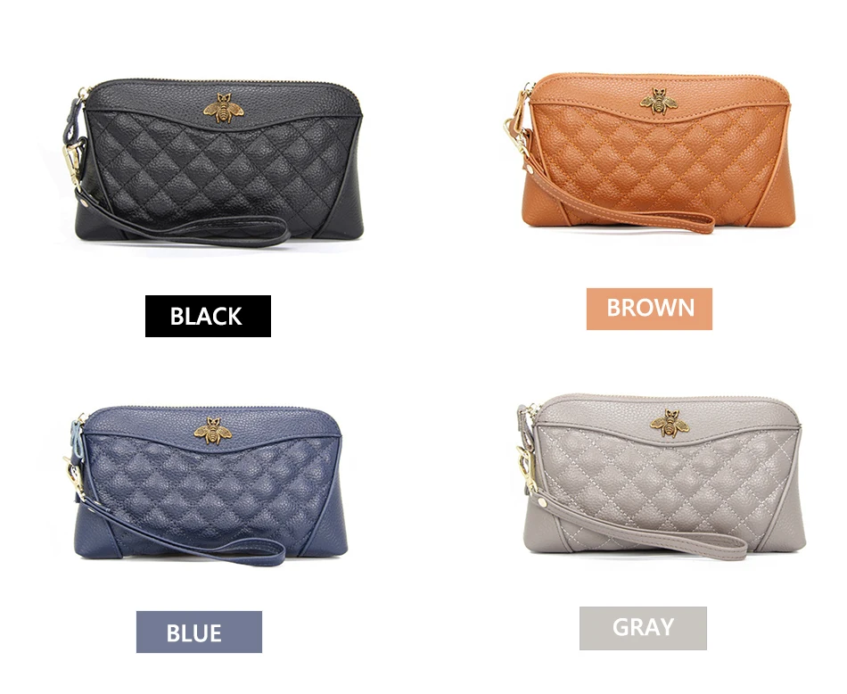 Кошелек женский из натуральной кожи, модный удлиненный клатч на молнии с Пчелой, роскошный брендовый вместительный бумажник для мелочи