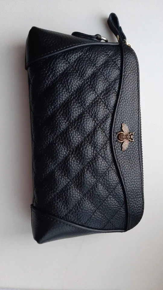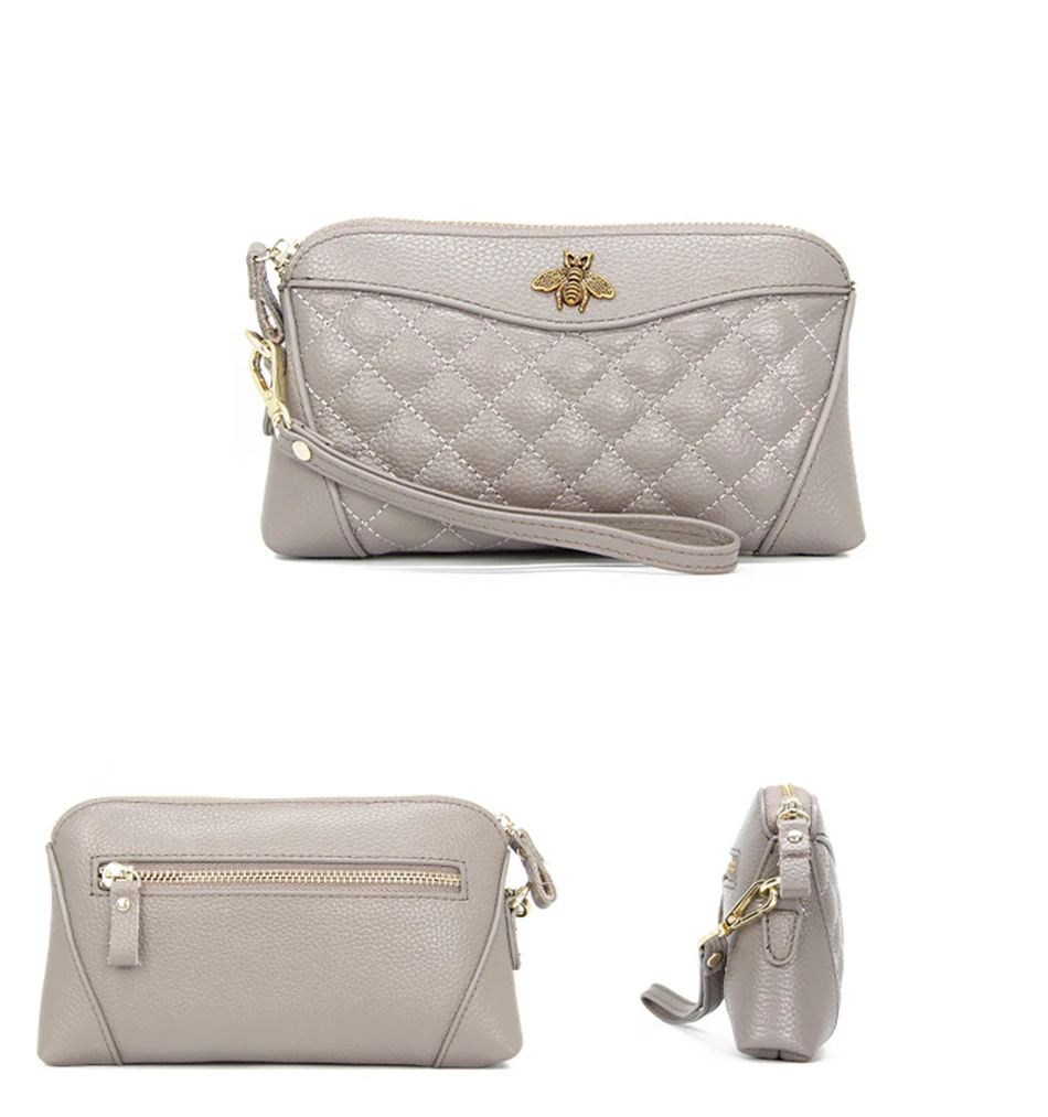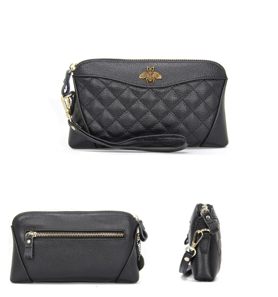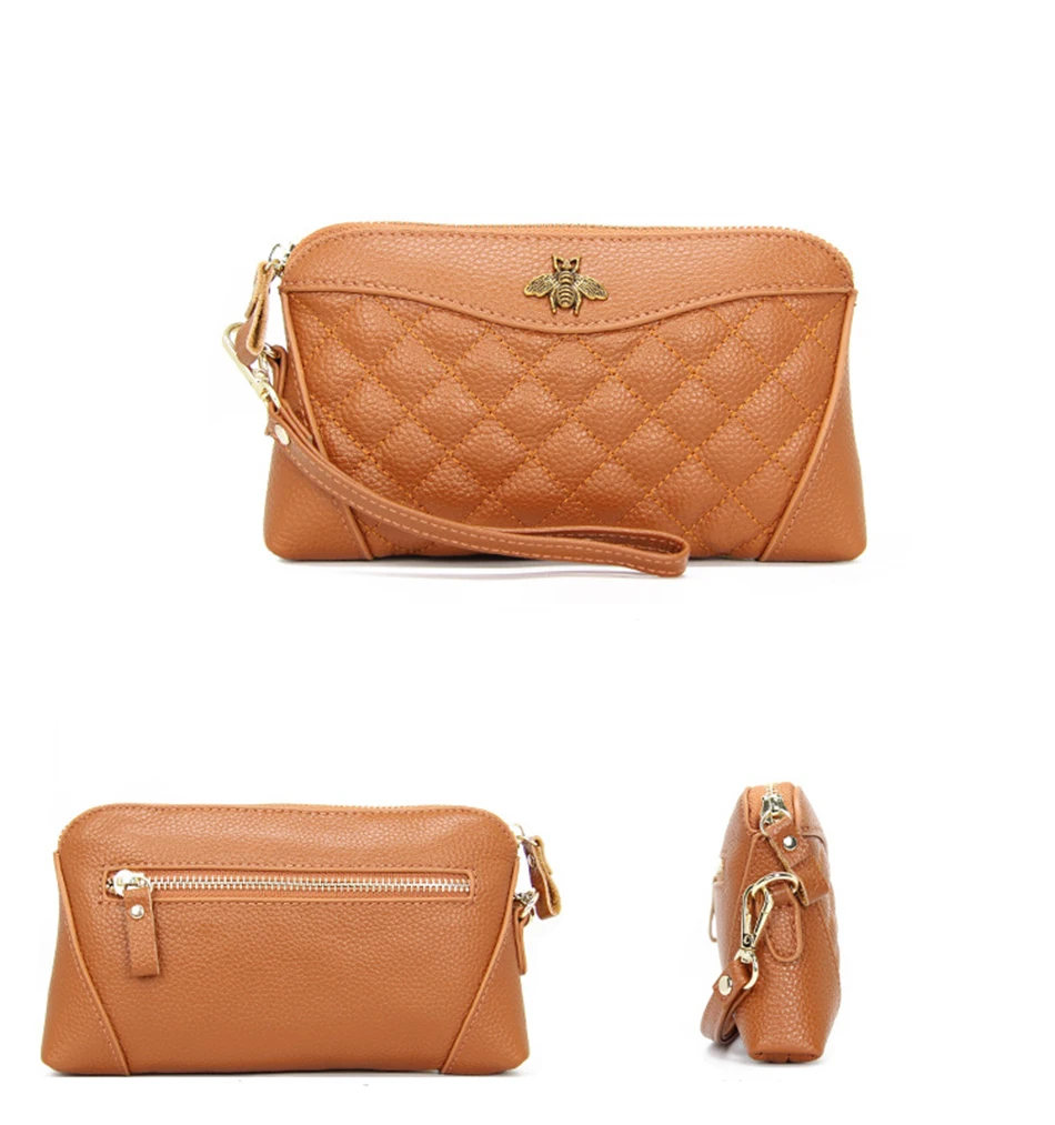 Кошелек женский из натуральной кожи, модный удлиненный клатч на молнии с Пчелой, роскошный брендовый вместительный бумажник для мелочи