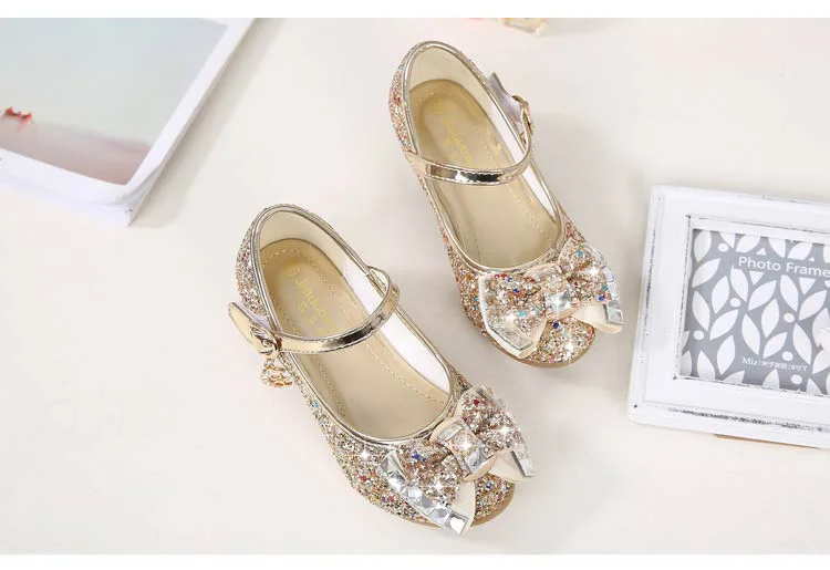 Классические туфли из искусственной кожи с бантом для девочек, детская обувь для танцев и вечерние, женская свадебная обувь на высоком каблуке