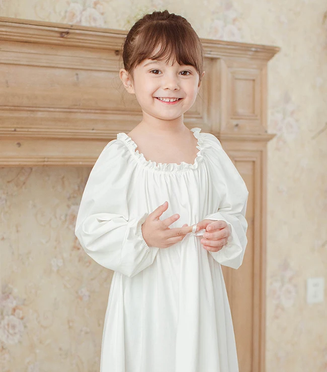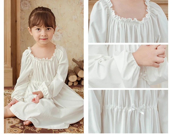 Детские стильные винтажные кружевные ночные рубашки в стиле принцессы