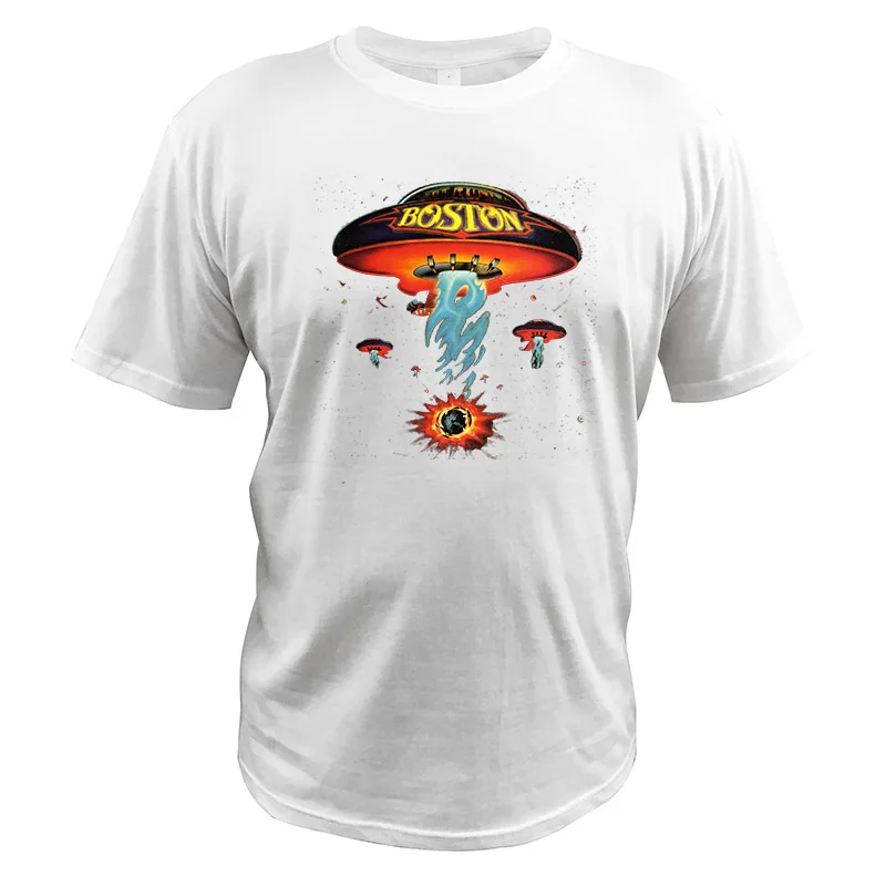 Футболка с изображением космического корабля Boston, футболка с изображением альбома Boston, американская рок-группа, 100% хлопок, модная футболка европейского размера