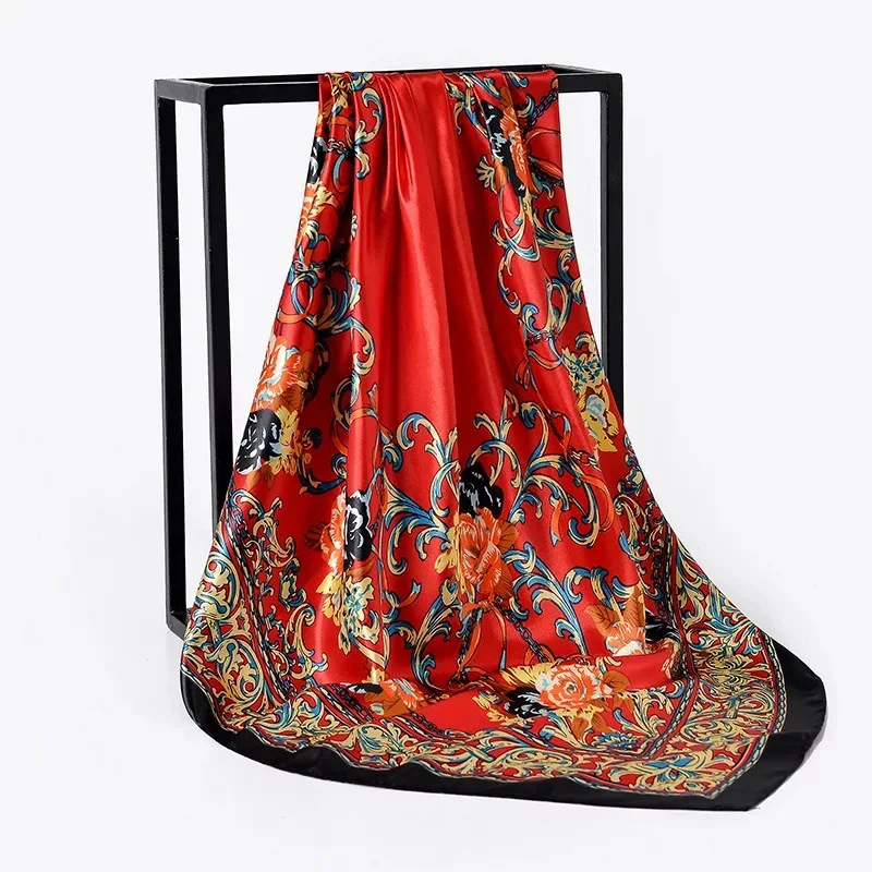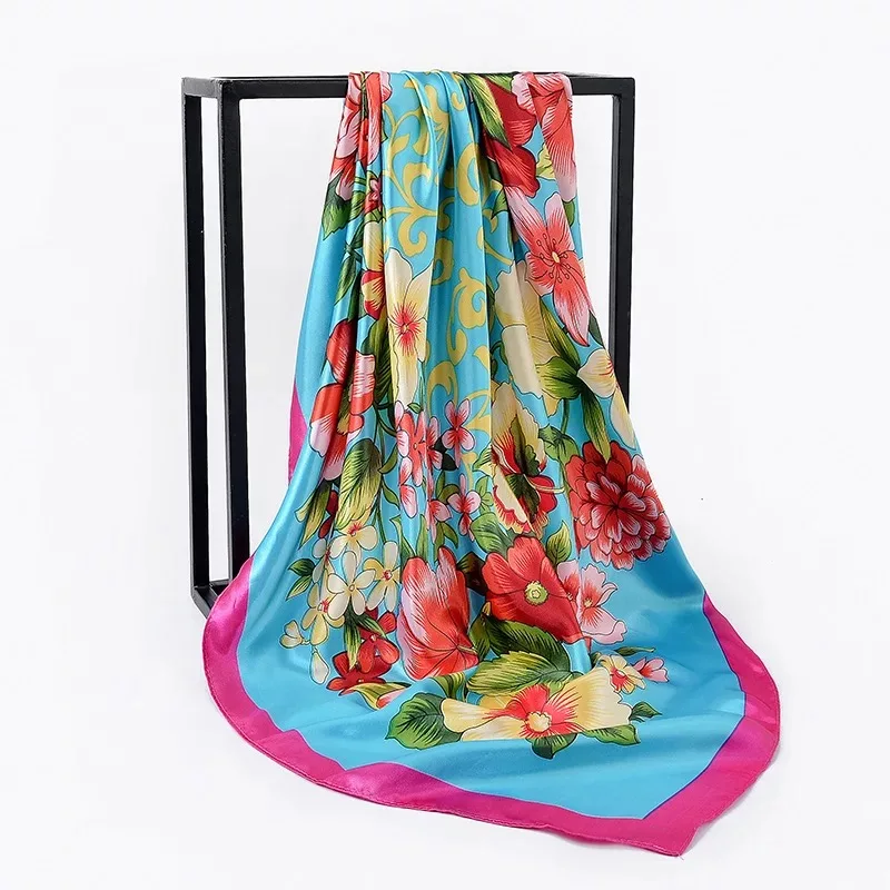 Шелковый шарф Для женщин принт волос шеи квадратные шарфы женские офисные шаль Бандана 90X90CM мусульманский платок-хиджаб глушитель платки