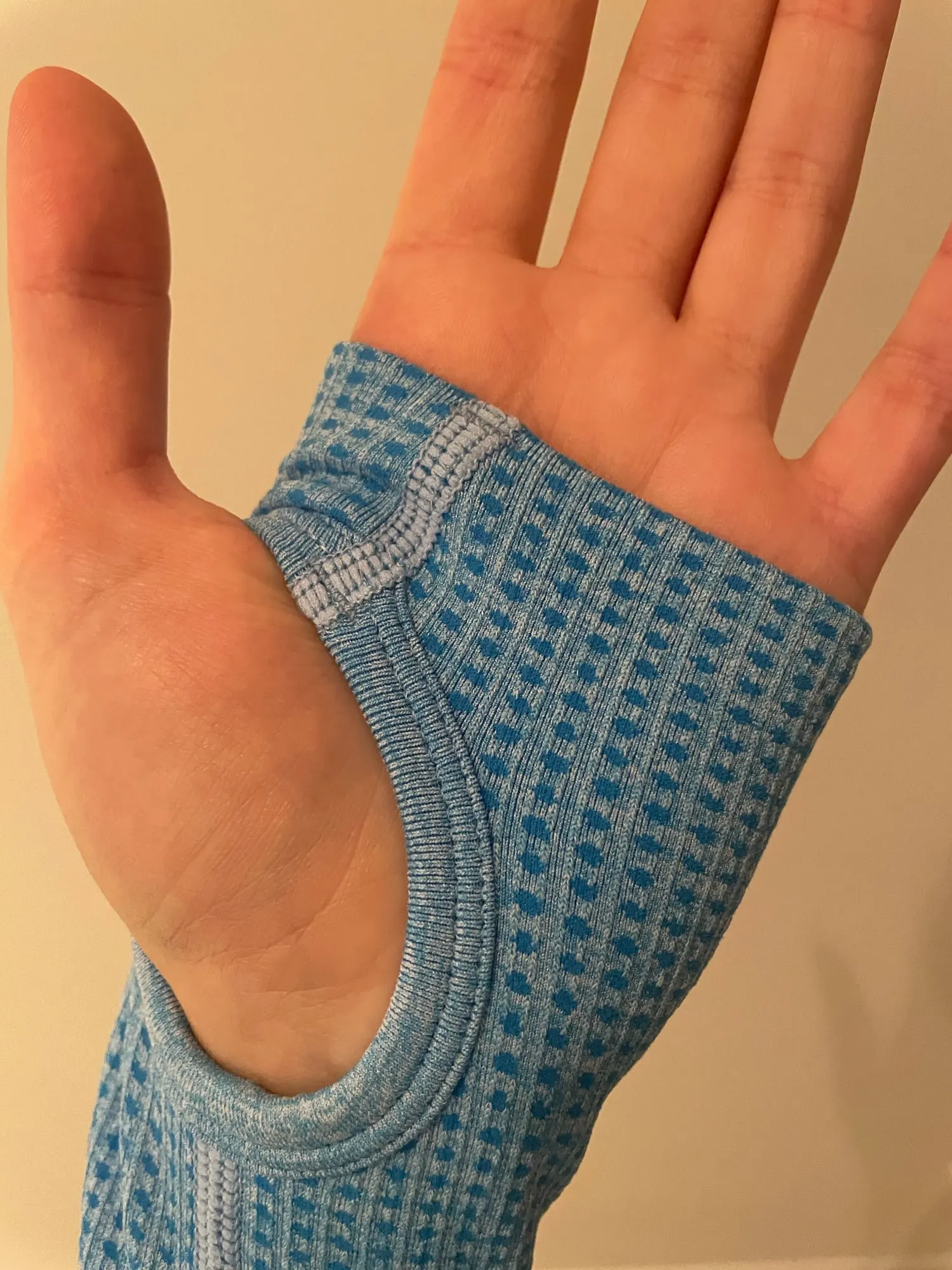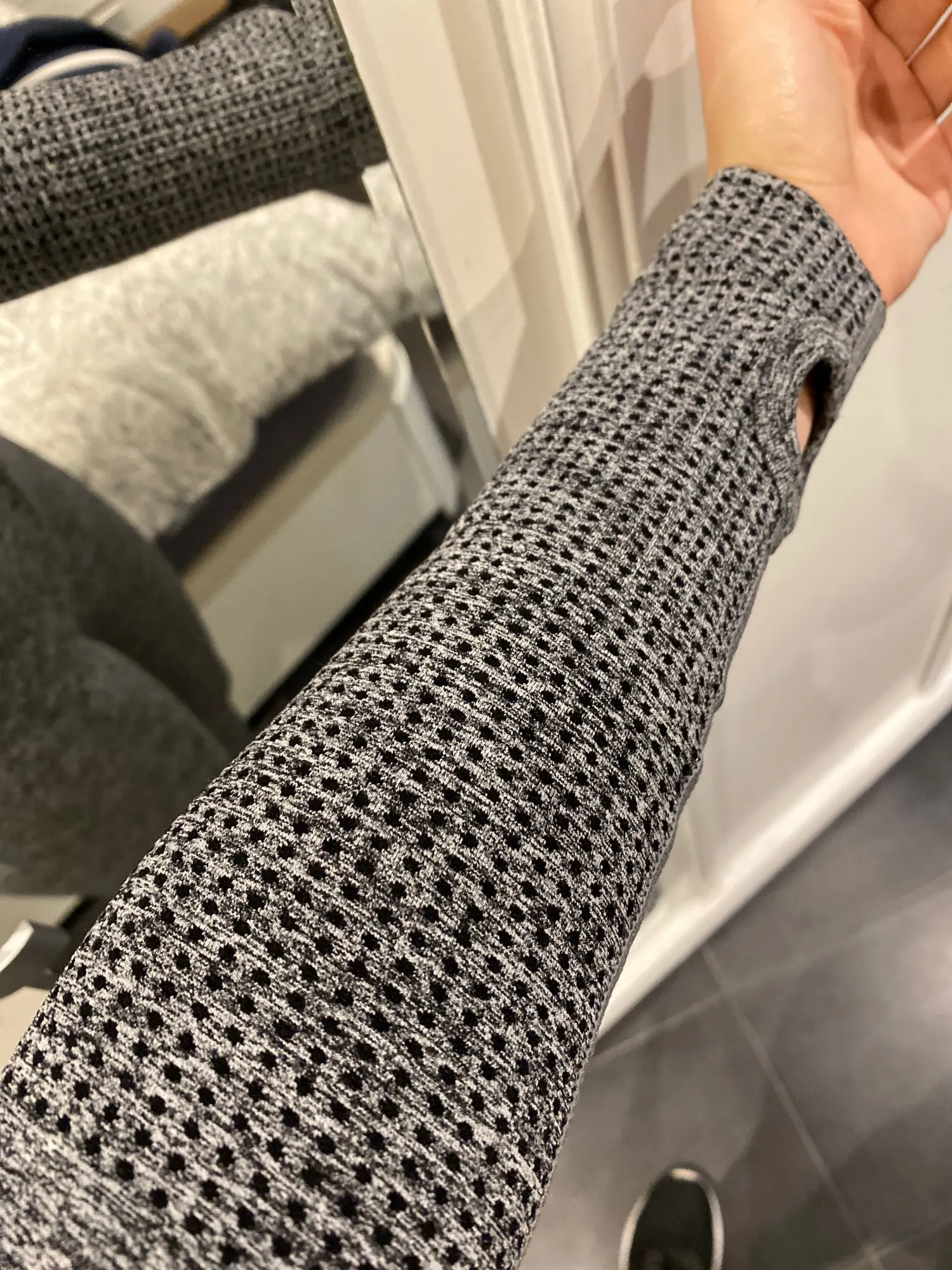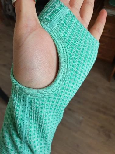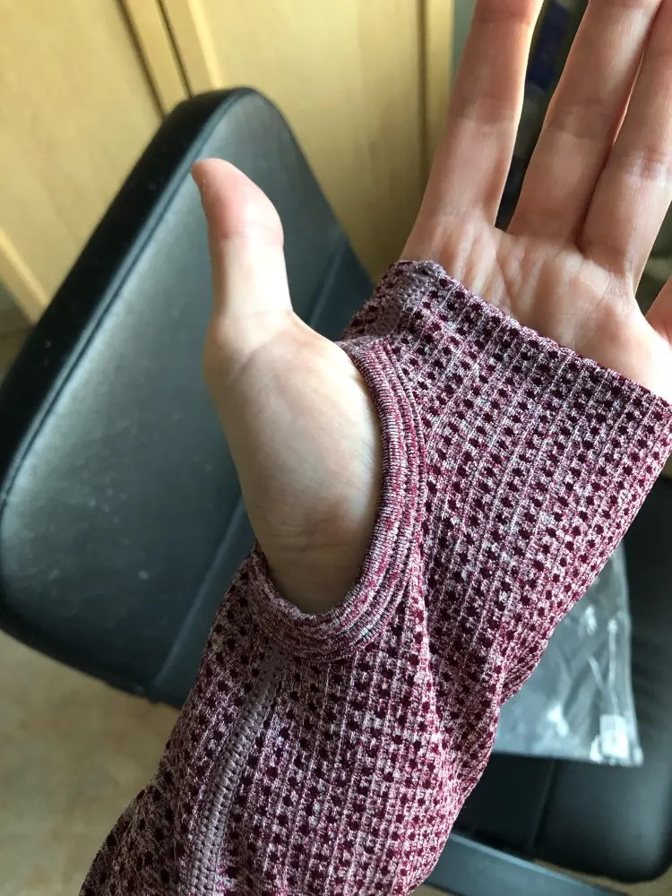 Продавец отправил посылку быстро, пришло в Москву за 2 недели или меньше. Отличная кофта для спорта. Не пахнет, все ровненько. На рост 162, он 82 и от 62 село хорошо, в прорезях для пальцев немного туговато, но это не критично. Рекомендую