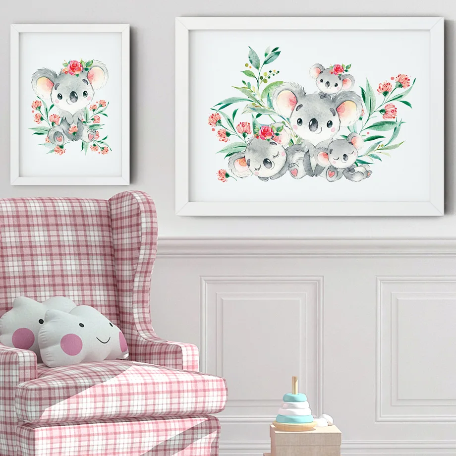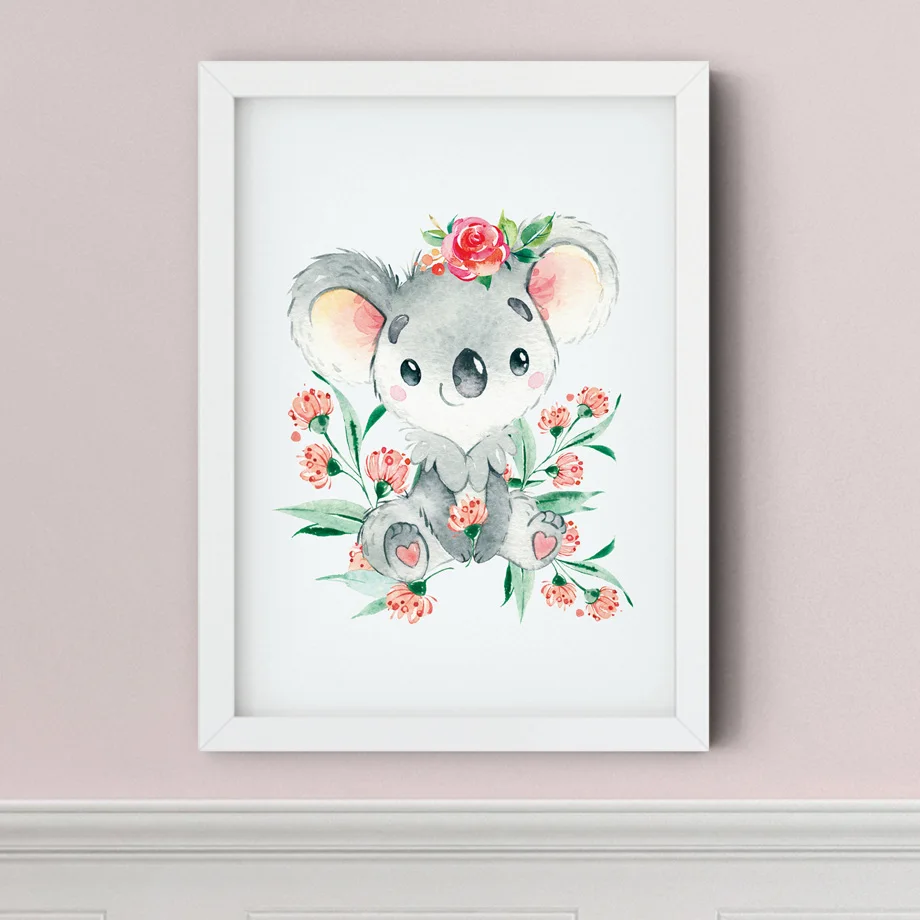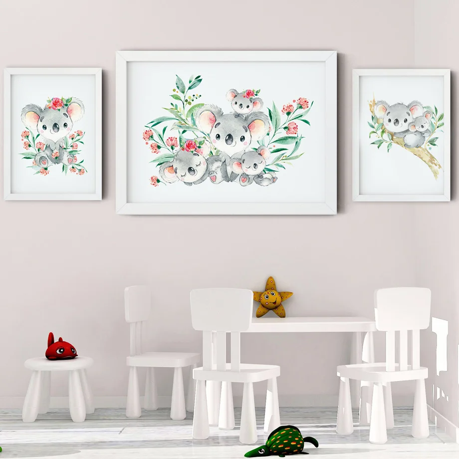 Koala детский цветочный лист детская настенная живопись Холст мультфильм скандинавские постеры и принты настенные картины для девочек и мальчиков Декор для детской комнаты