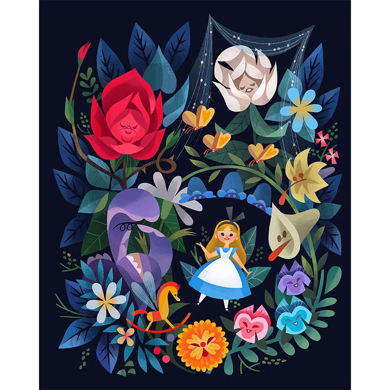 Алмазная 5D картина сделай сам с полными квадратными стразами, вышивка крестиком, Алиса и цветы, 3D Алмазная вышивка стразы, мозаика, украшение для дома