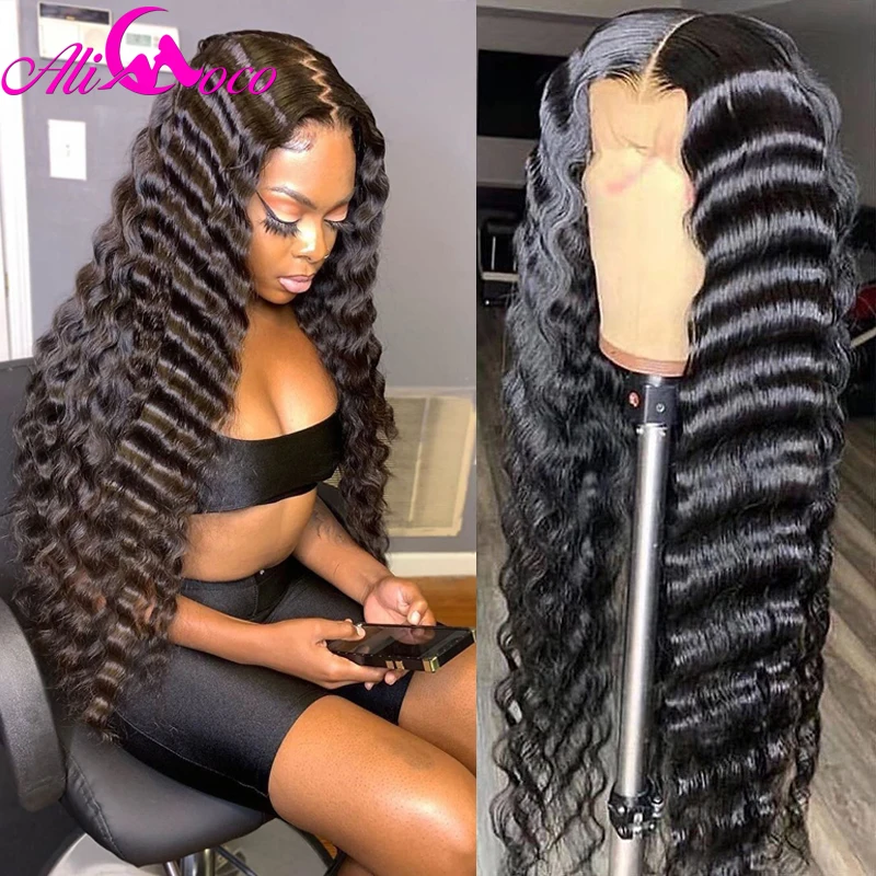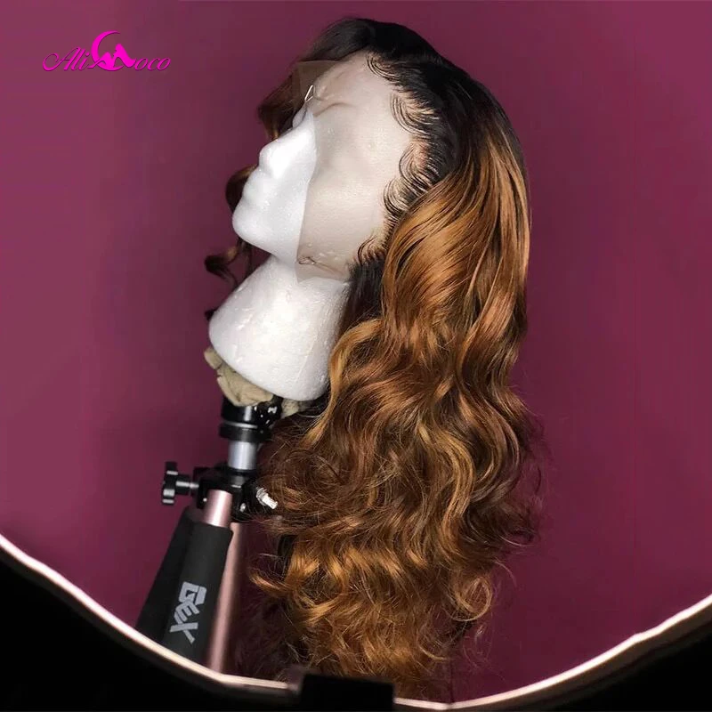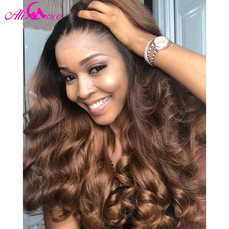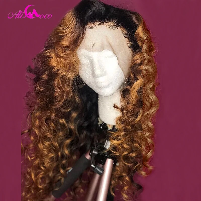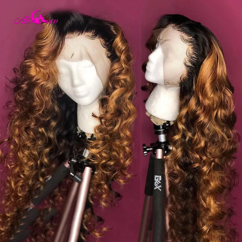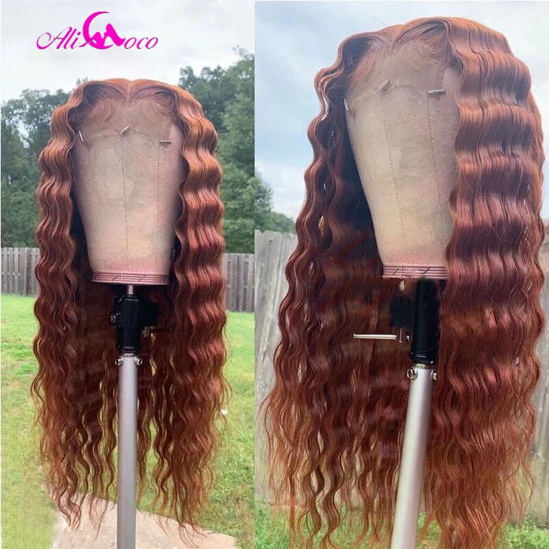 Али Коко 180% глубокая волна человеческих волос Синтетические волосы на кружеве парики 1B30оранжевый имбирь эффектом деграде (переход от темного к Цвет бразильский человеческих волос глубокая волна парики предварительно вырезанные