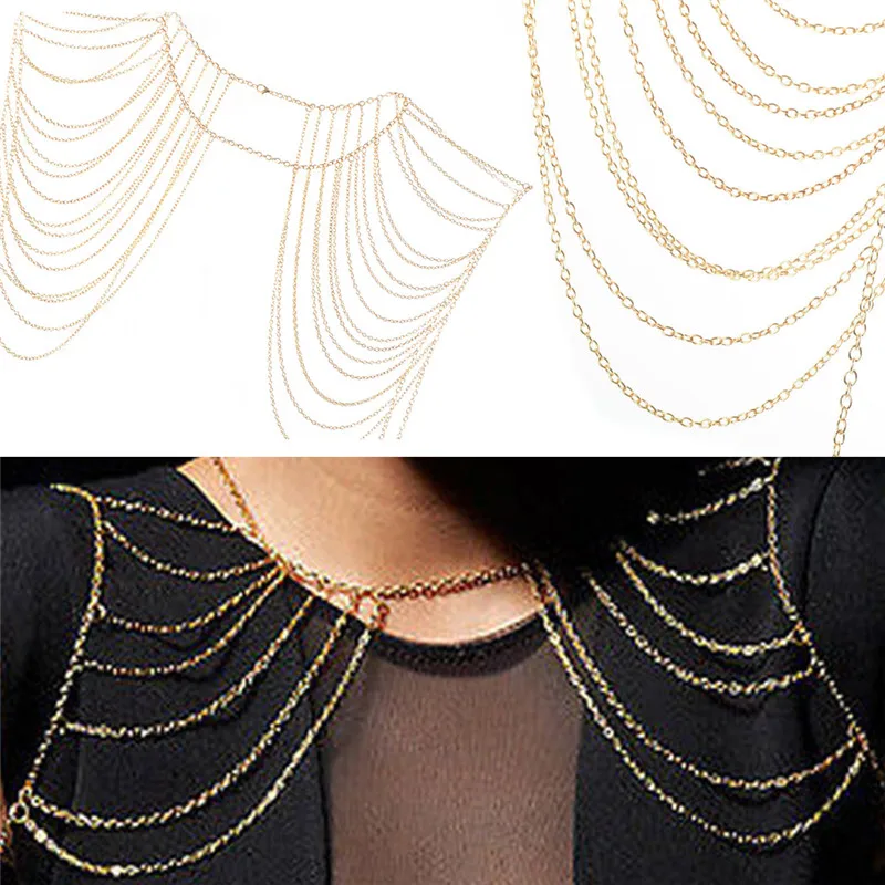 Женские сексуальные массивные украшения для тела, богемные ожерелья-цепочки в стиле панк, длинные ожерелья и подвески на ожерелье, цепочка на плечо, прибл. 45,5 см