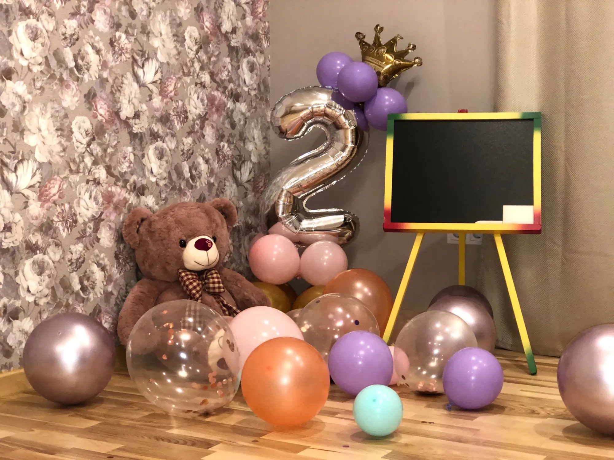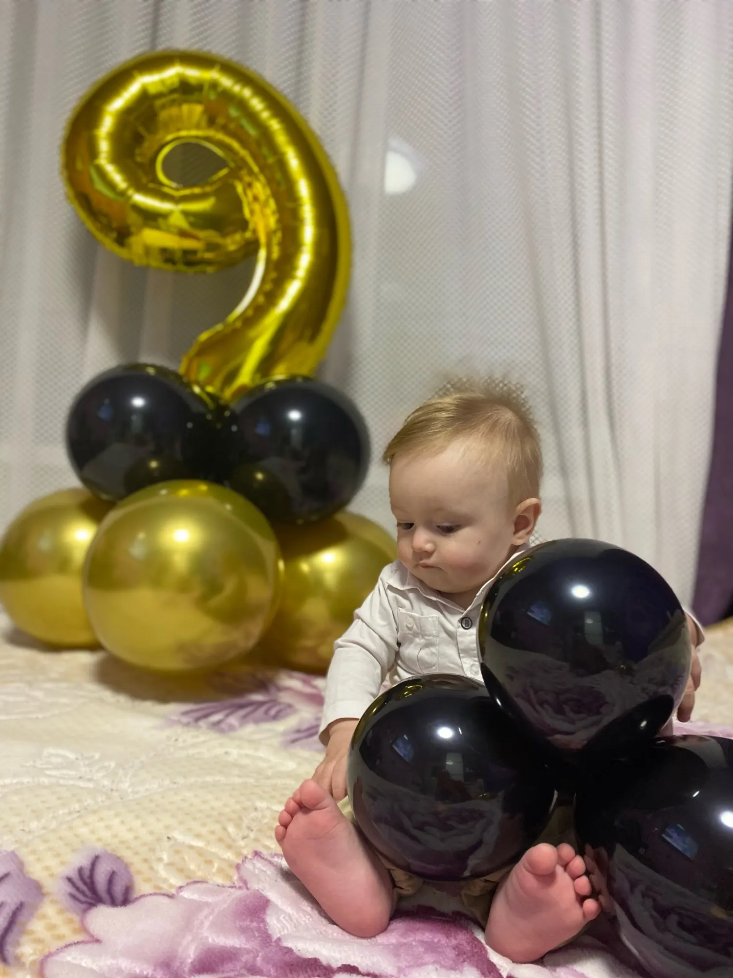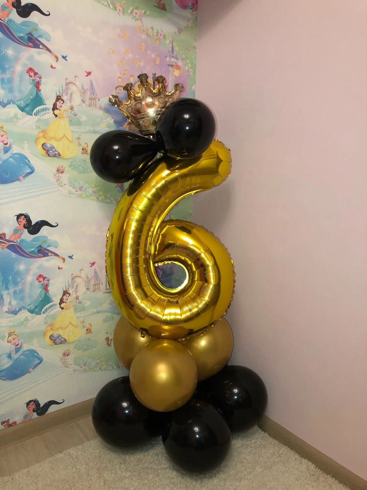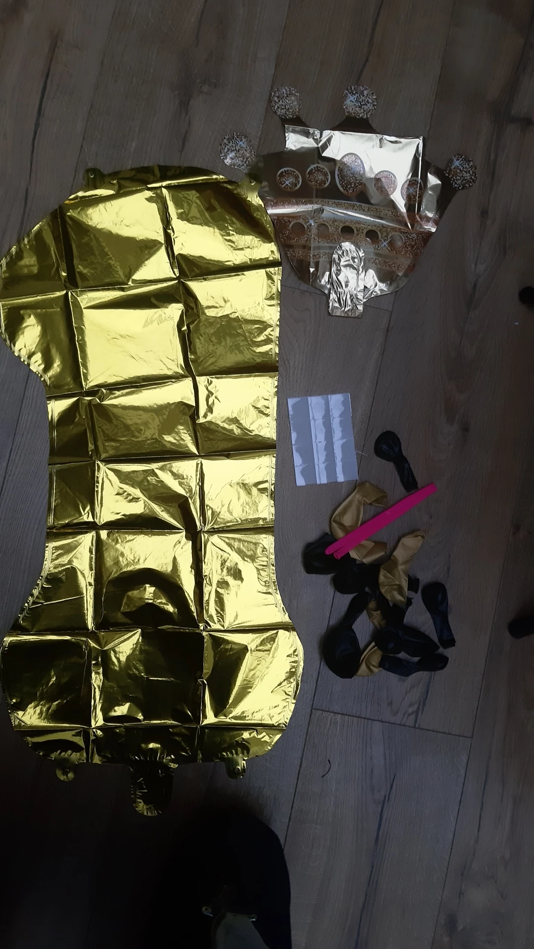 Прислали только один длинный шарик, нижние с единичкой я скрепила, а вот на верхние шары и корону бесполезно потратила время, пытаясь приклеить, в итоге психанула полопала шары и выкинула, оставила "голой" цифру. Был один дополнительный золотой шар. Доставка быстрая, пришло все вовремя.
