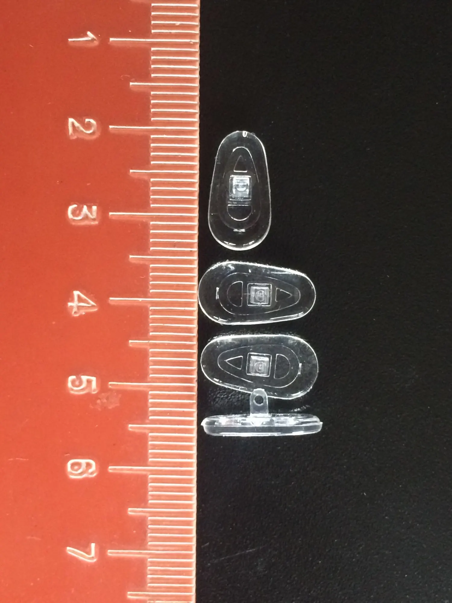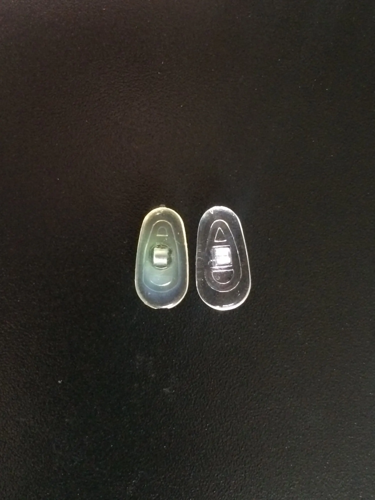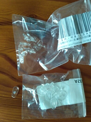 Пришли объединёнными вместе с другими посылками в один пакет. Гнутся. Силикон мягкий. В длину 14 мм, ширина в самой широкой части 7 мм, толщина 2 мм. Они отличаются от тех что ставили мне в оптике, на 1мм длиннее и 0,5 мм толще. Заменила на оправе на эти, пока не комфортно, ощущается разница толщины. возможно нужно привыкнуть.