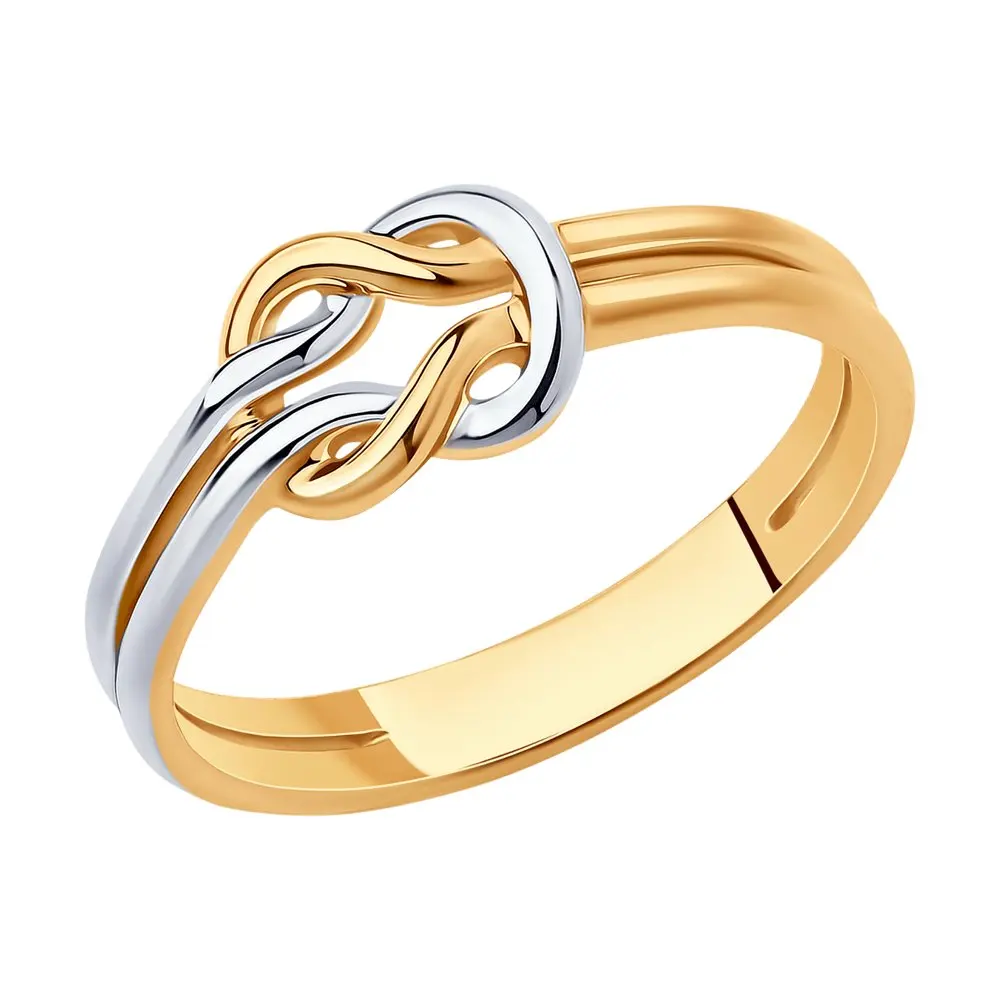 Кольцо SOKOLOV из золочёного серебраСтильное кольцо из золочёного серебра понравится любителям аксессуаров с оригинальной авторской задумкой. Оно воплощает идею единения противоположностей, дуэт которых позволяет взглянуть на них под другим углом. Тёплый и холодный оттенки металла образуют эффектный контраст, дополнительно подчёркнутый декором в виде узла. Необычный, но вместе с тем лаконичный дизайн позволяет рассматривать это украшение как альтернативу привычным классическим кольцам на каждый день.