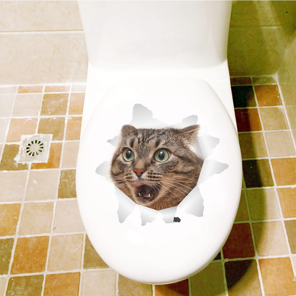 3D кошка наклейки на стену ванная комната украшение гостиной настенная бумага украшение кухни сломанные настенные наклейки