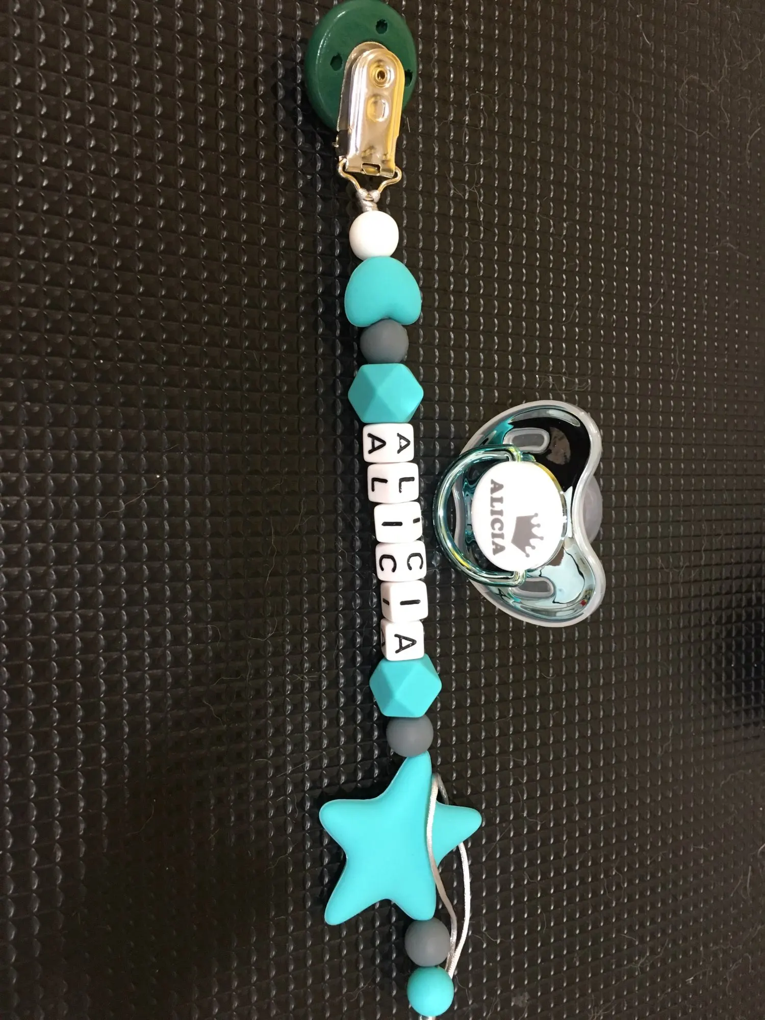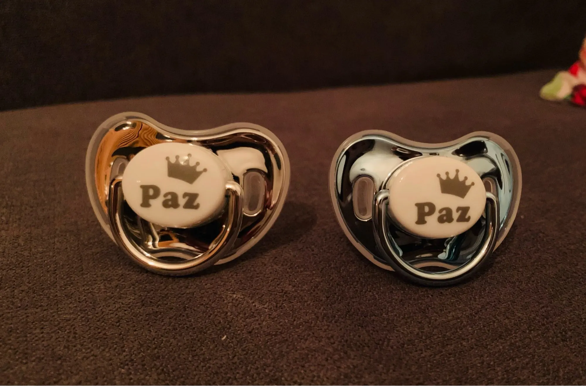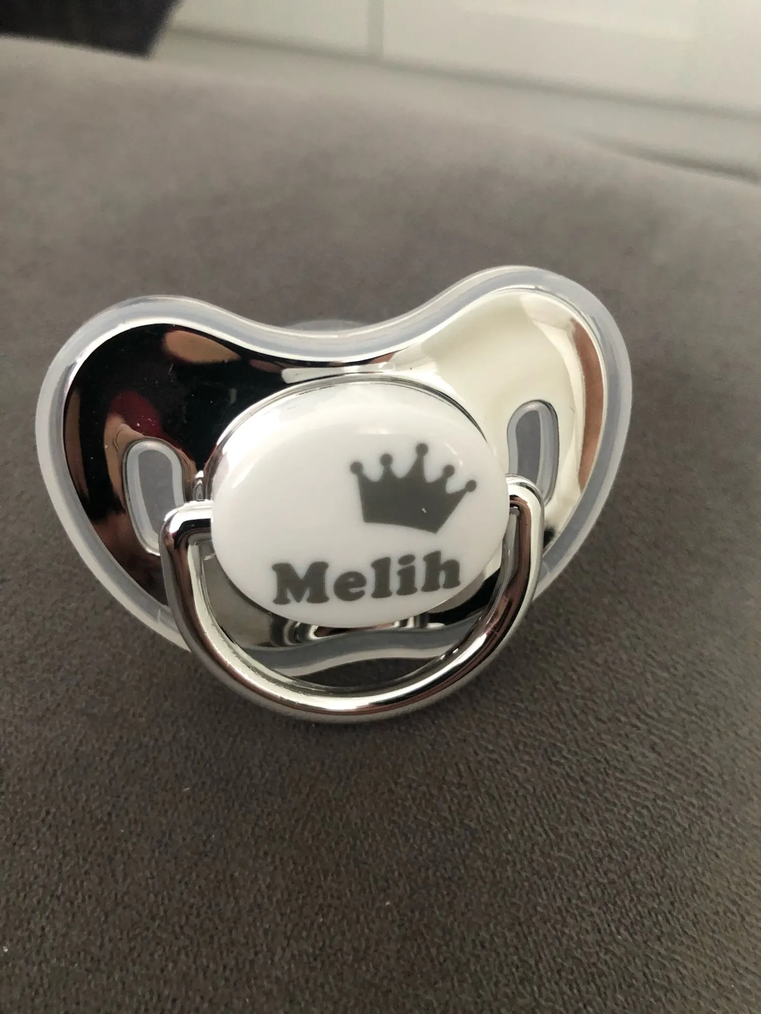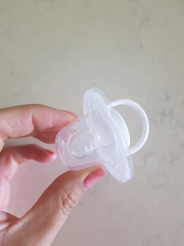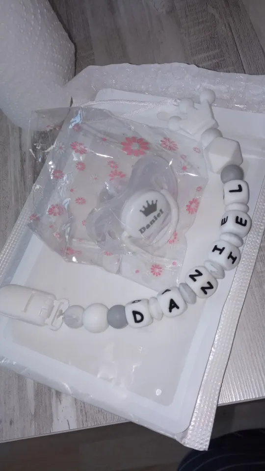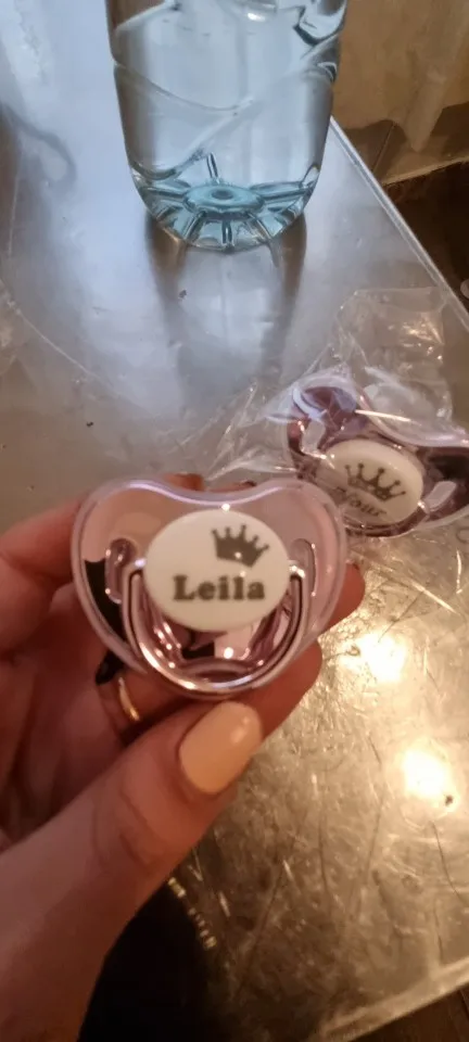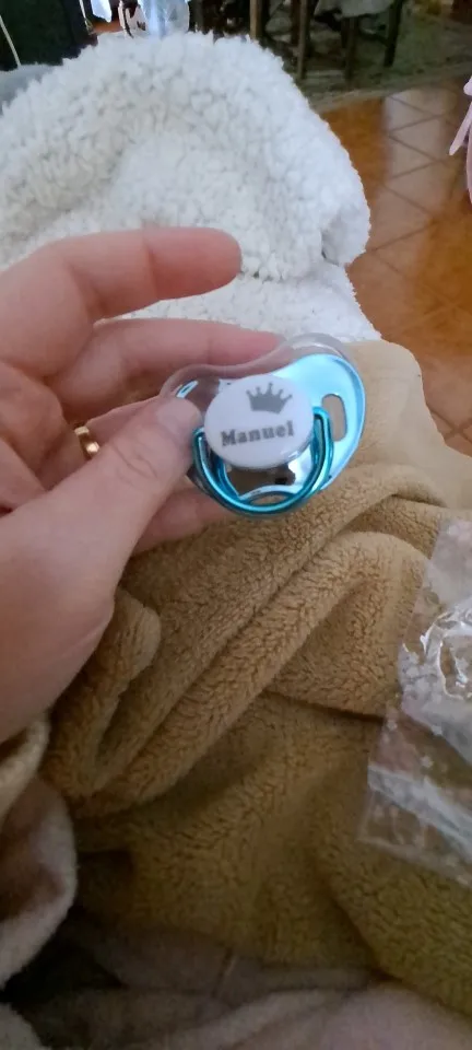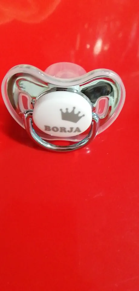 Я в восторге от покупки, Они идеальны. Идеальная отделка. Они сделаны из силикона и идеально подходят для ребенка 3-6 месяцев, соска сама по себе большая, поэтому она не подойдет для новорожденного. Я обязательно куплю больше, так как за эту цену и персонализированный оно того стоит Соски поставляются с протектором, который легко надевается и удаляется