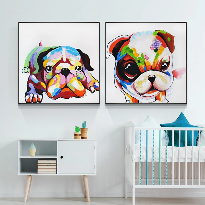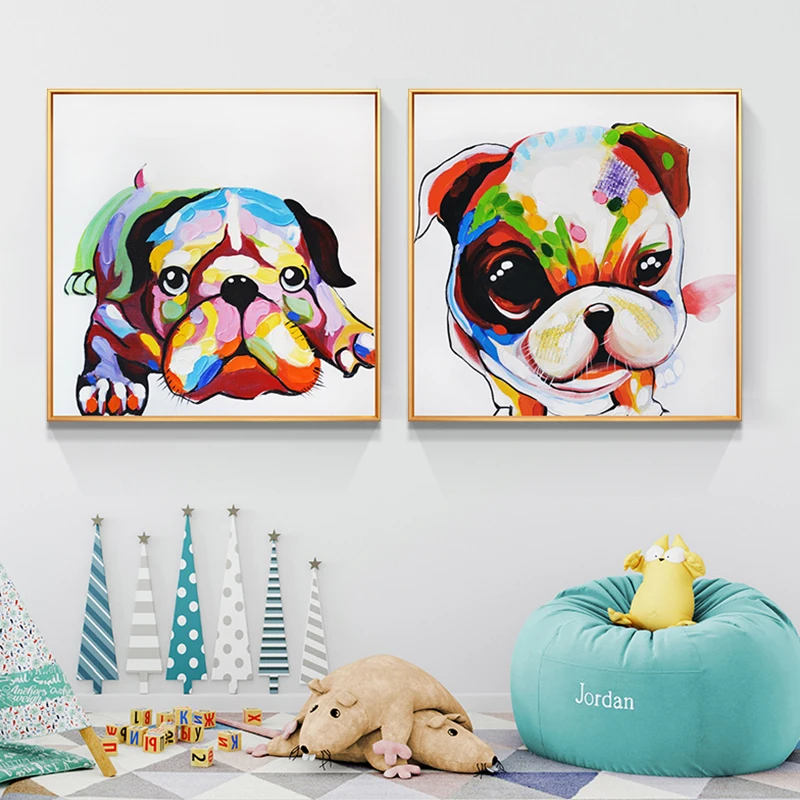 100% ручная роспись Абстрактная красочная Собака Картина на холсте настенное искусство без рамки картина украшение для живой комнаты домашний Декор подарок