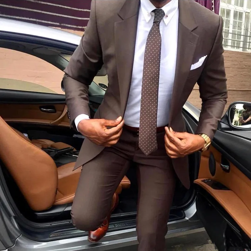 Мужской повседневный костюм Brwon, двубортный пиджак, облегающий Св...