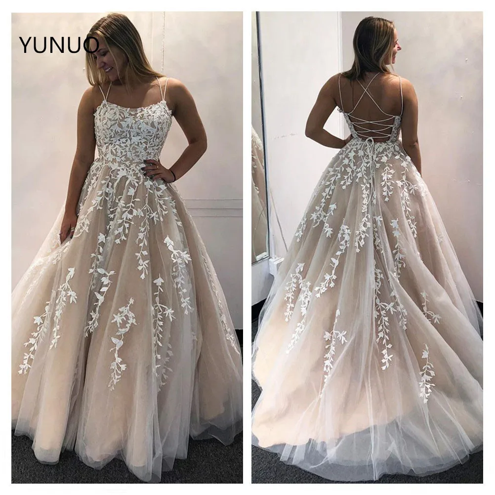 Потрясающие Выпускные платья YUNUO 2021, платье на двойных бретельках без рукавов, платье для торжества, юрское платье, кружевное платье для выпускного вечера, корсет с аппликацией на спине