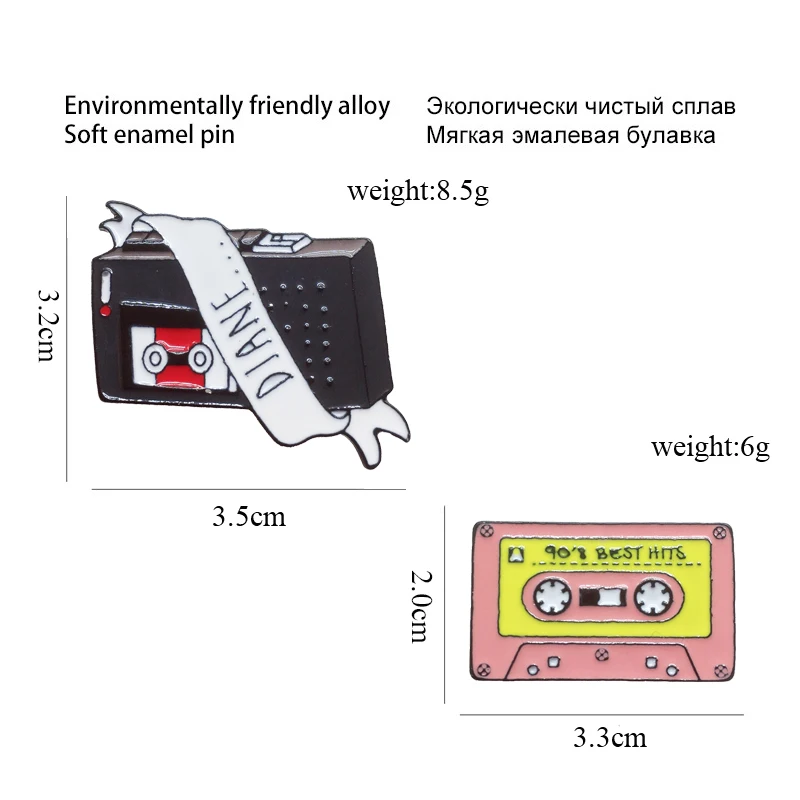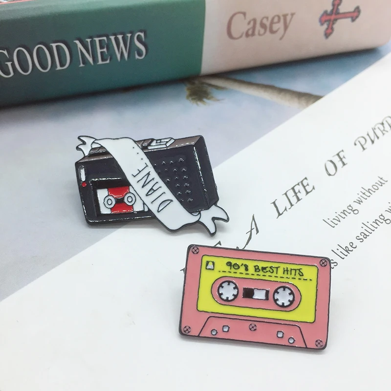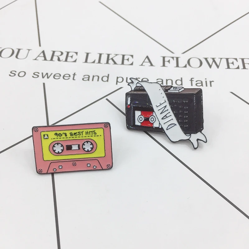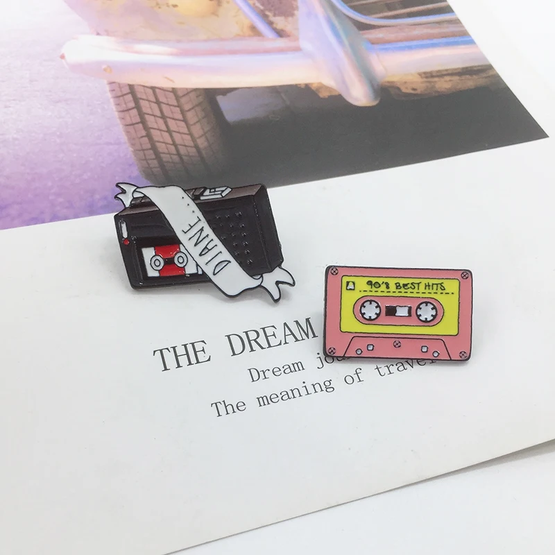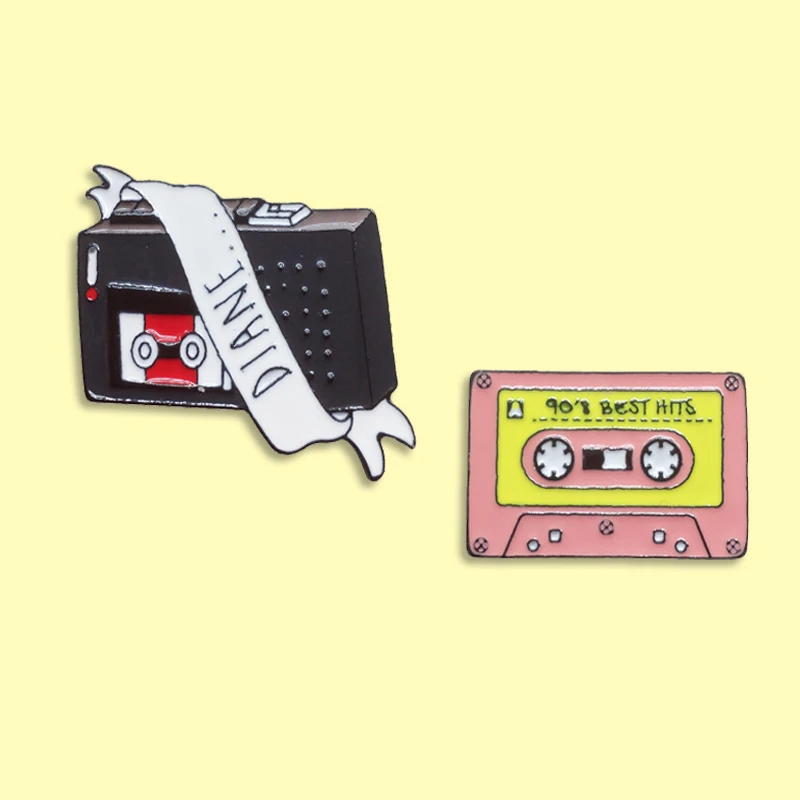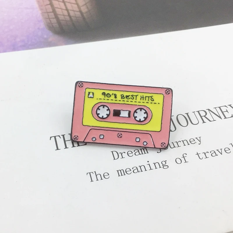 Винтажный портативный рекордер эмалированный значок розовая магнитная лента значок брошь джинсовая одежда рюкзак ретро ювелирные изделия подарок для друзей