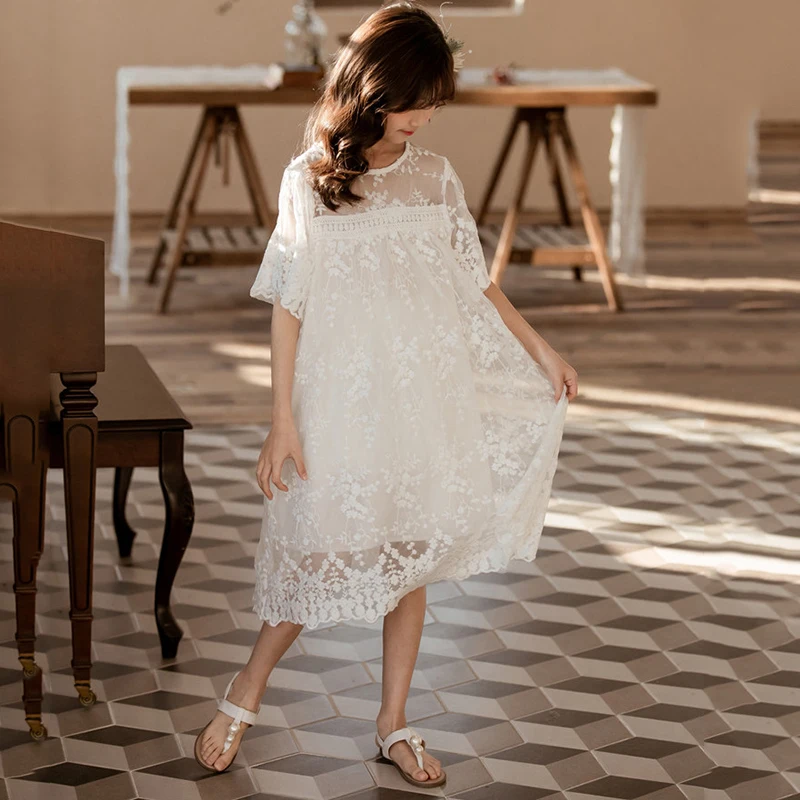 Новое поступление 2020, летние кружевные платья для девочек, милые платья принцессы для маленьких девочек, детское Элегантное Длинное стильное летнее платье для девочек, #8379