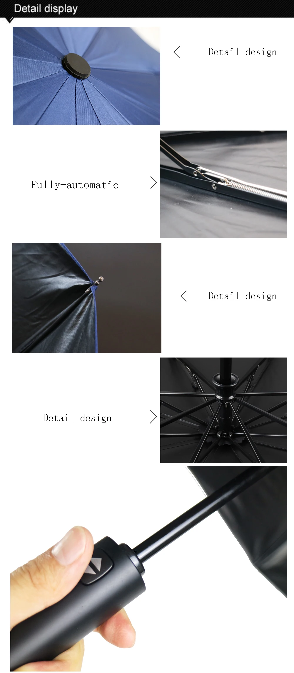 1. Откройте зонтик: А. Снимите крышку зонта и откройте Пряжка для зонтика. Встряхните поверхность зонта, чтобы Зонт открылся равномерно. B. Нажмите зонтик вверх от кнопки ручки зонта (будьте осторожны, чтобы не нажимать кнопку вниз) до тех пор, пока верхняя часть зонта не застревает и проверьте, надежно ли он крепится после открытия. 2. Закройте зонт: A. Осторожно нажмите кнопку ручки зонта, затем зонт будет обмотан. B. Расположите ребро зонта к держателю зонта после того, как он обмотан, а затем расправьте лист зонта по одному в соответствии со складывающимися отметками. Расположите лист зонта в том же направлении. Найдите Пряжка для зонтика, удерживайте лист зонта от середины в направлении пряжки и затяните ремень пряжки вокруг листа зонта по кругу. Поверните Зонт вниз и поверните его по часовой стрелке, затем его можно легко держать в чехле зонта.