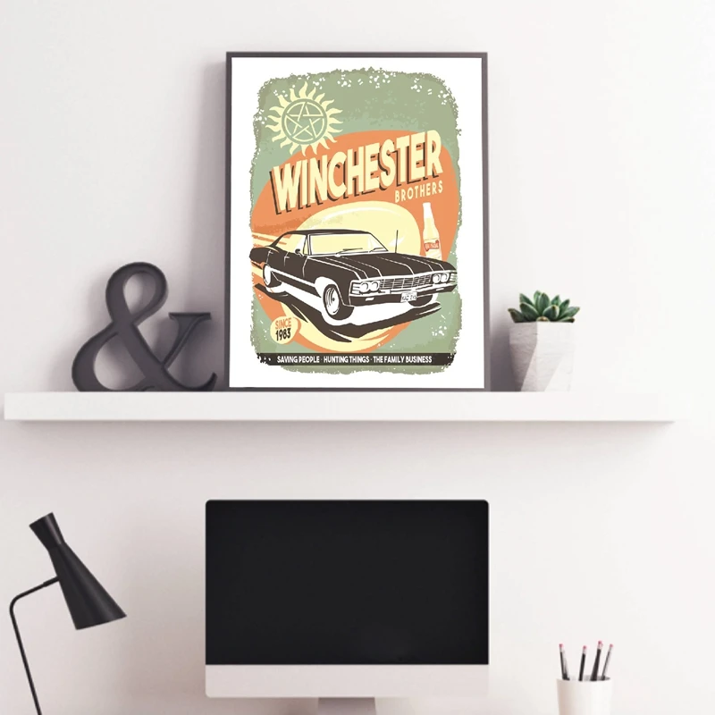 Супернатуральный постер на холсте для телевизионной выставки, Ретро Печать автомобиля импала, гаражный знак, декоративная живопись, рисунок о и Дин, братья Винчестер