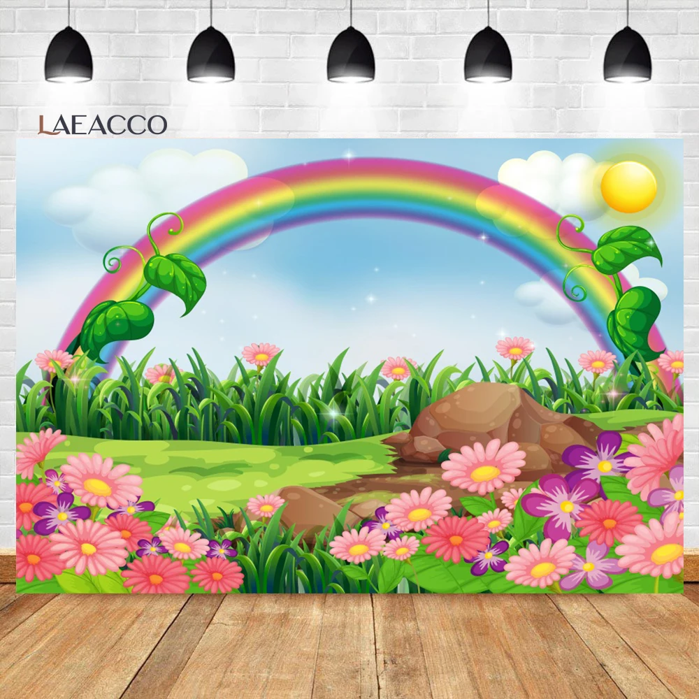 Фон для фотосъемки в день рождения с изображением голубого неба и радуги луга