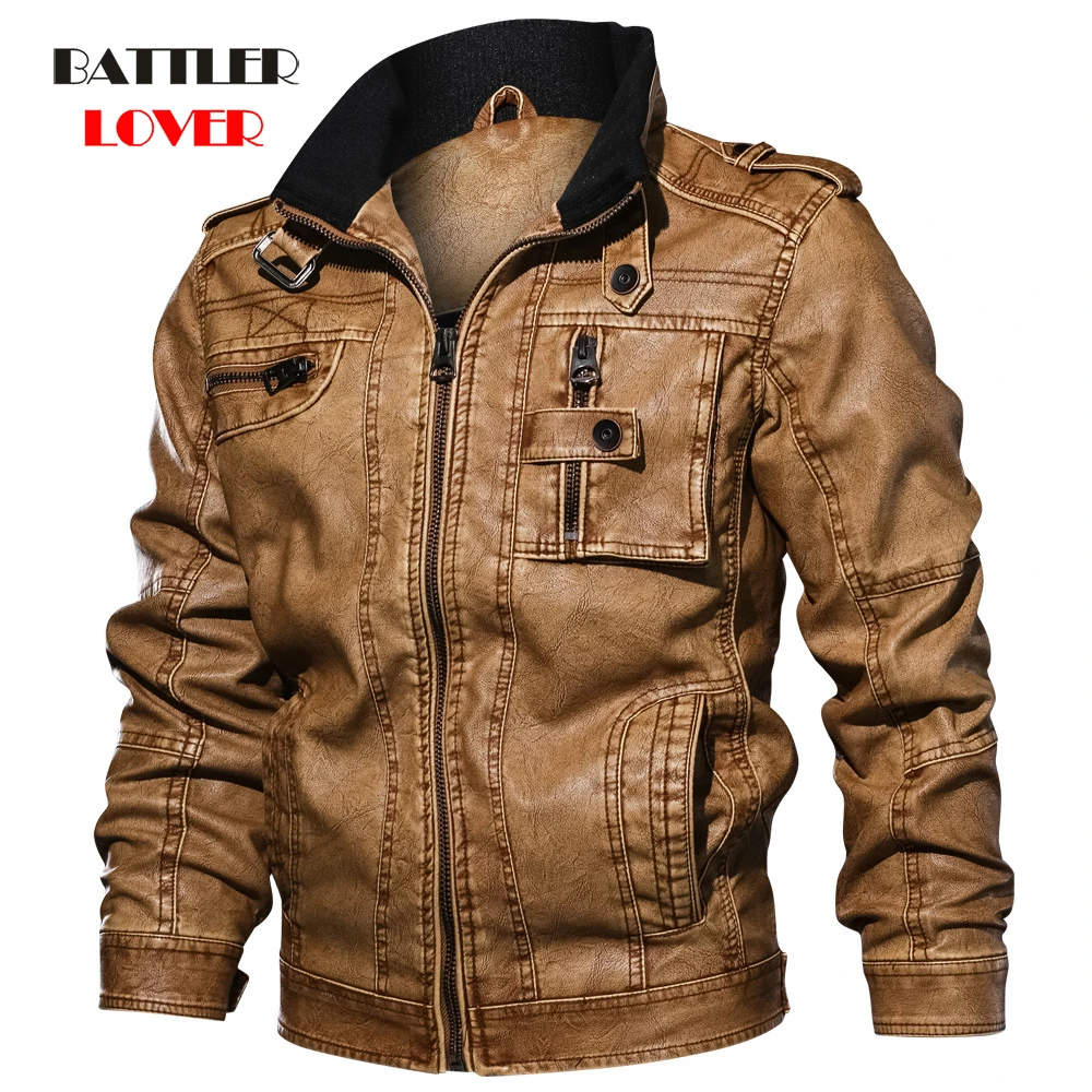 Мужские кожаные куртки высокого качества, Классическая мотоциклетна...