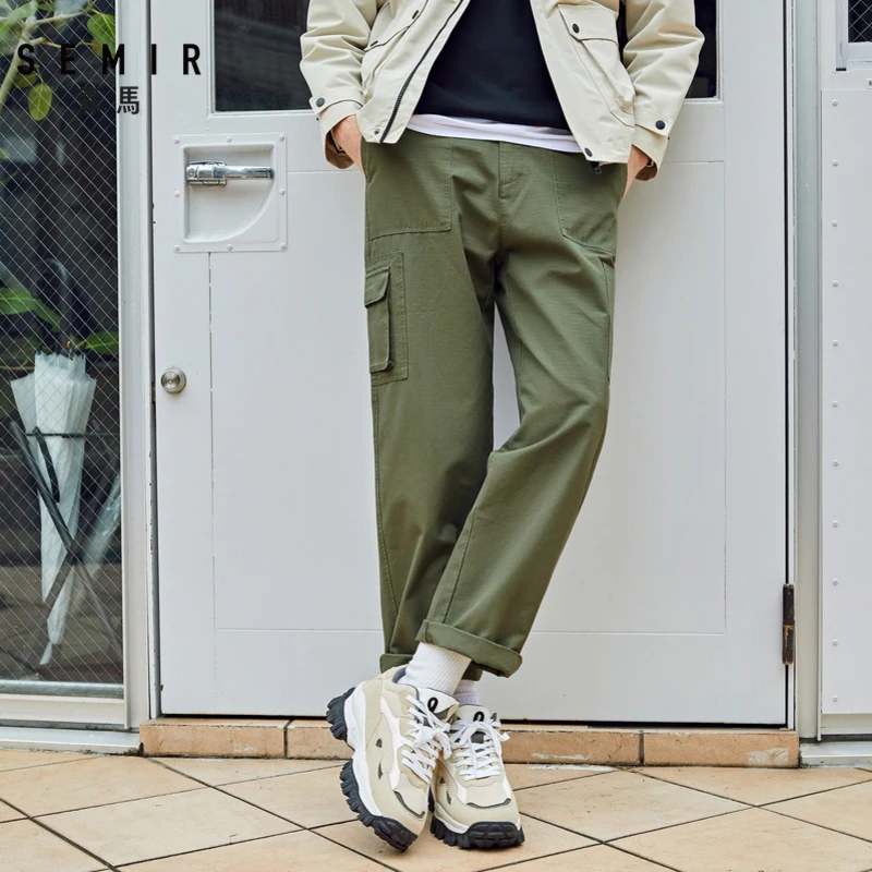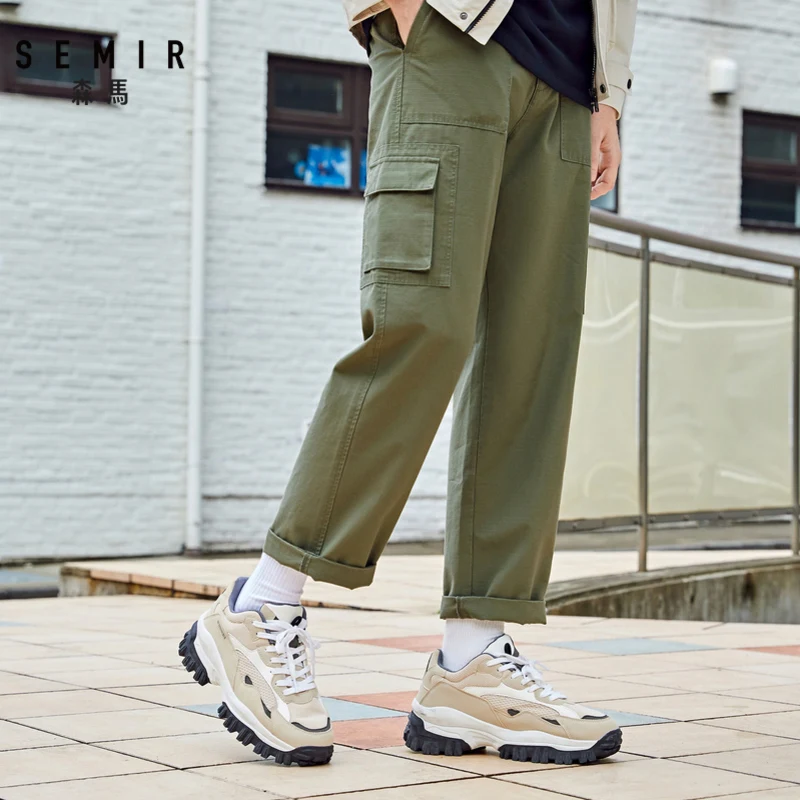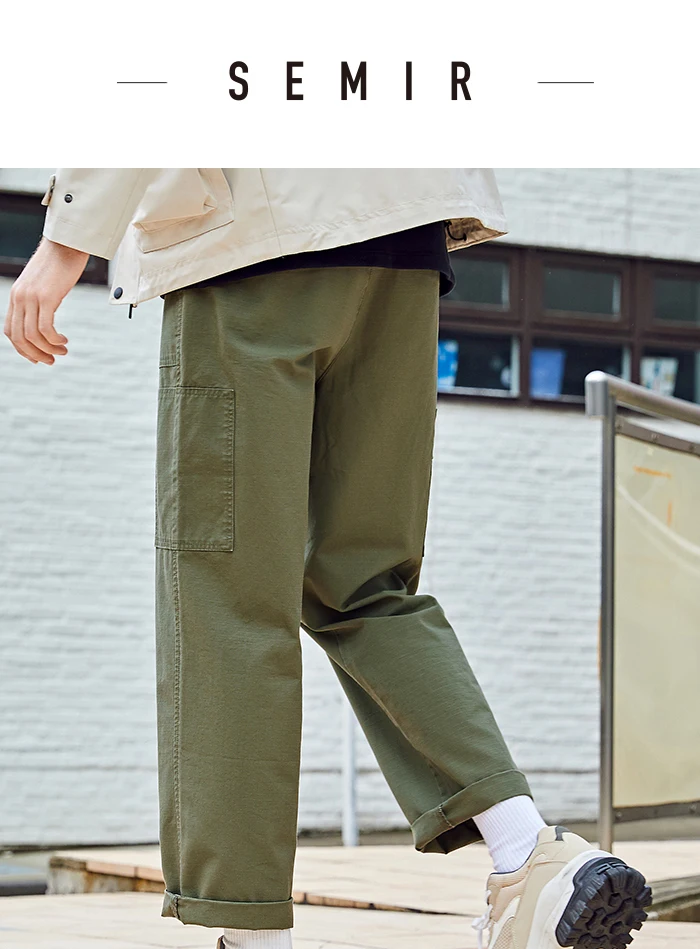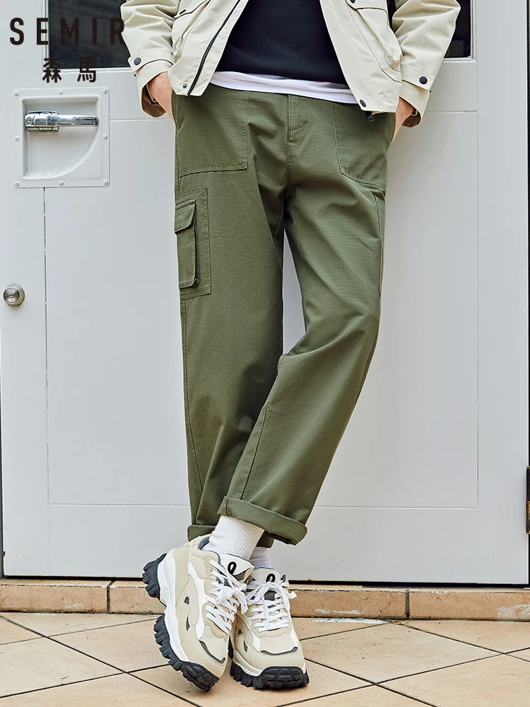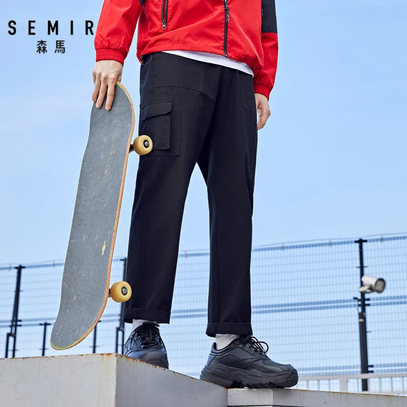 Весна 2020, Новые повседневные мужские прямые брюки SEMIR, Девятый стиль инструментальной обработки, однотонные хлопковые брюки